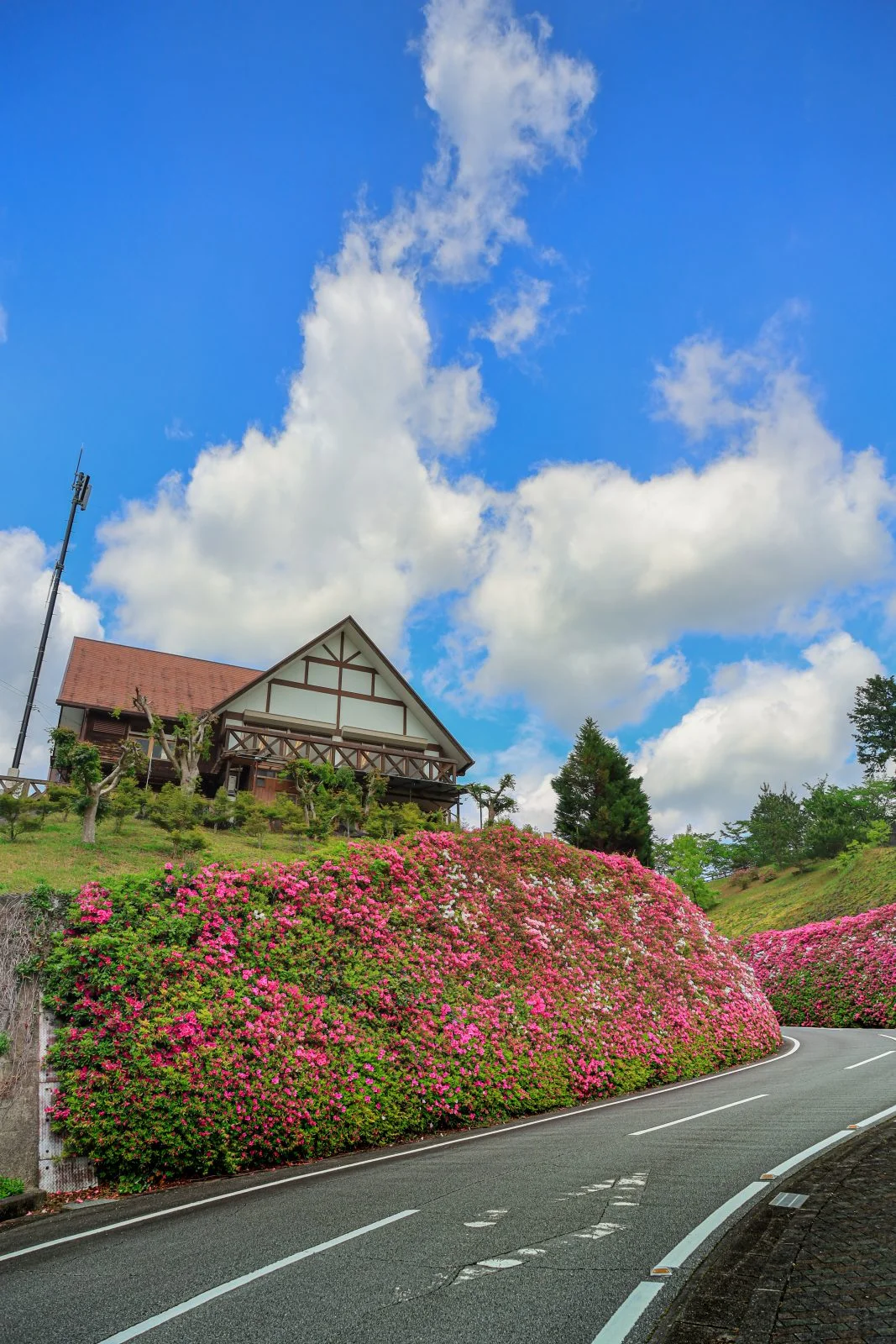 無料スマホ壁紙「初夏のツツジと青空」はiPhone・Androidに対応した縦長の高画質な待ち受けです。三重県の道の駅 茶倉駅でふがまるちゃんが撮影した写真です。今月のカレンダーを合成や開運数字を追加するカスタマイズも可能です。商用利用OKのフリー写真素材ですが、利用規約を守ってご利用ください。