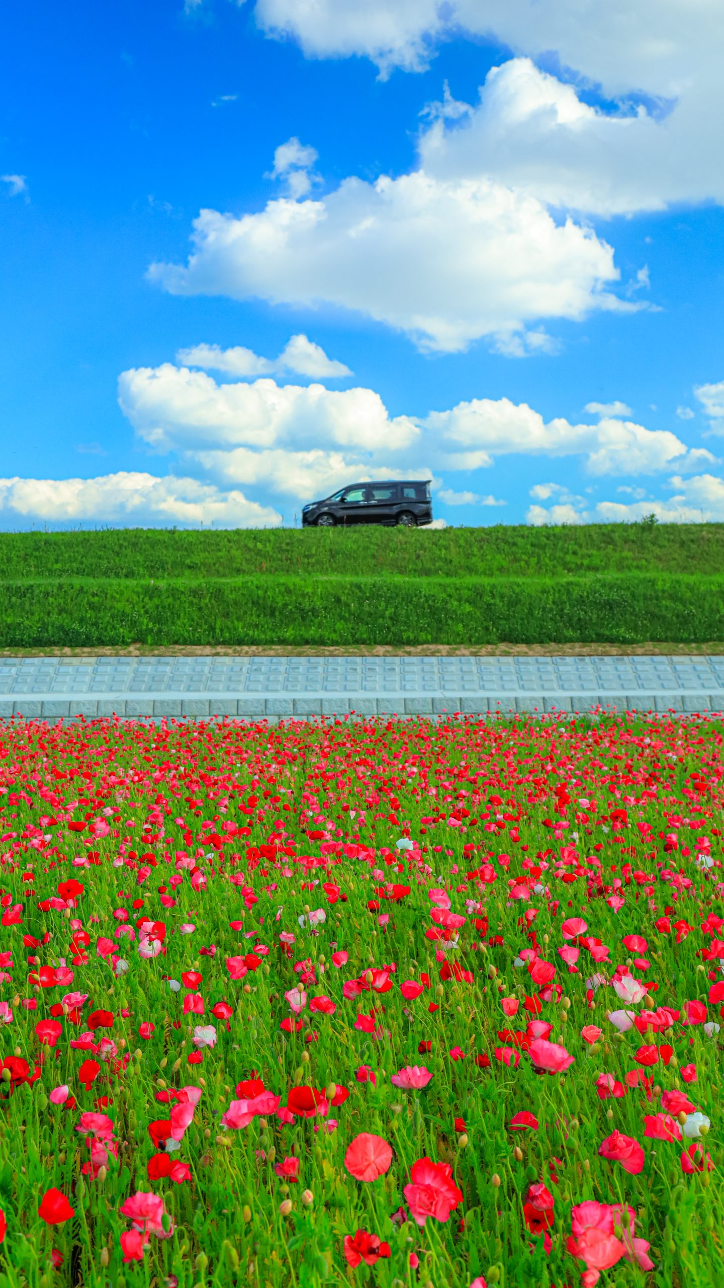 無料スマホ壁紙「ポピー畑と初夏の青空」はiPhone・Androidに対応した縦長の高画質な待ち受けです。三重県の津市木造町のポピー畑でふがまるちゃんが撮影した写真です。今月のカレンダーを合成や開運数字を追加するカスタマイズも可能です。商用利用OKのフリー写真素材ですが、利用規約を守ってご利用ください。