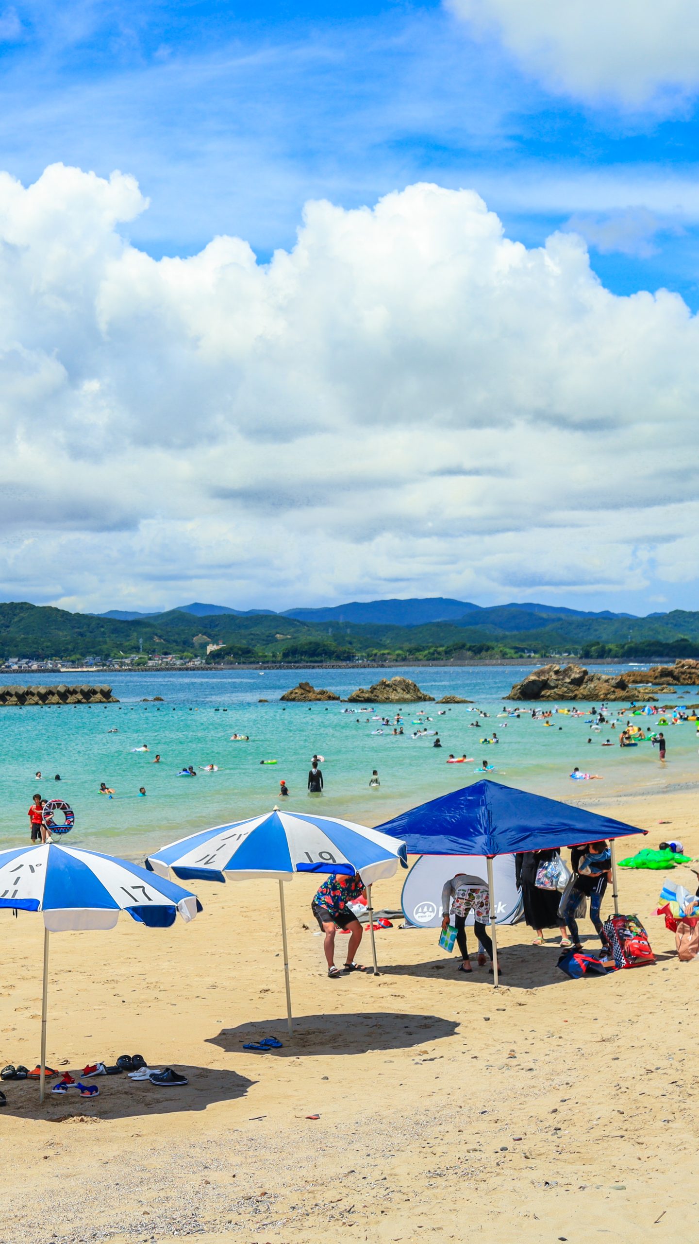 無料の写真素材「海開き」は高画質なPC壁紙とiPhone・Androidに対応した縦長のスマホ壁紙を無料でダウンロードできます。三重県の御座白浜海水浴場でふがまるちゃんが撮影した写真です。商用利用OKのフリー写真素材ですが、利用規約を守ってご利用ください。