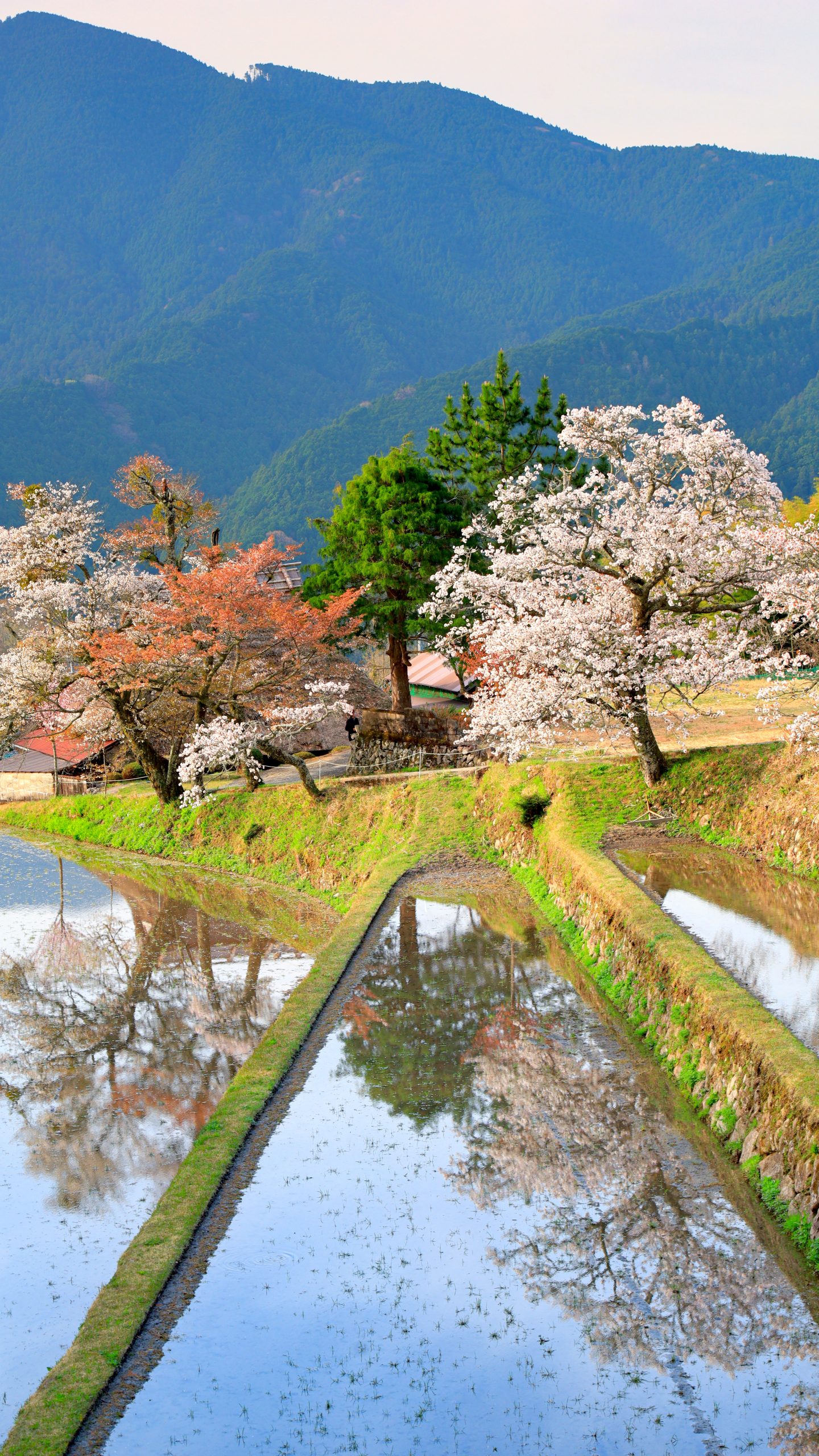 無料スマホ壁紙「青空が映る棚田」はiPhone・Androidに対応した縦長の高画質な待ち受けです。三重県の三多気の桜でふがまるちゃんが撮影した写真です。今月のカレンダーを合成や開運数字を追加するカスタマイズも可能です。商用利用OKのフリー写真素材ですが、利用規約を守ってご利用ください。