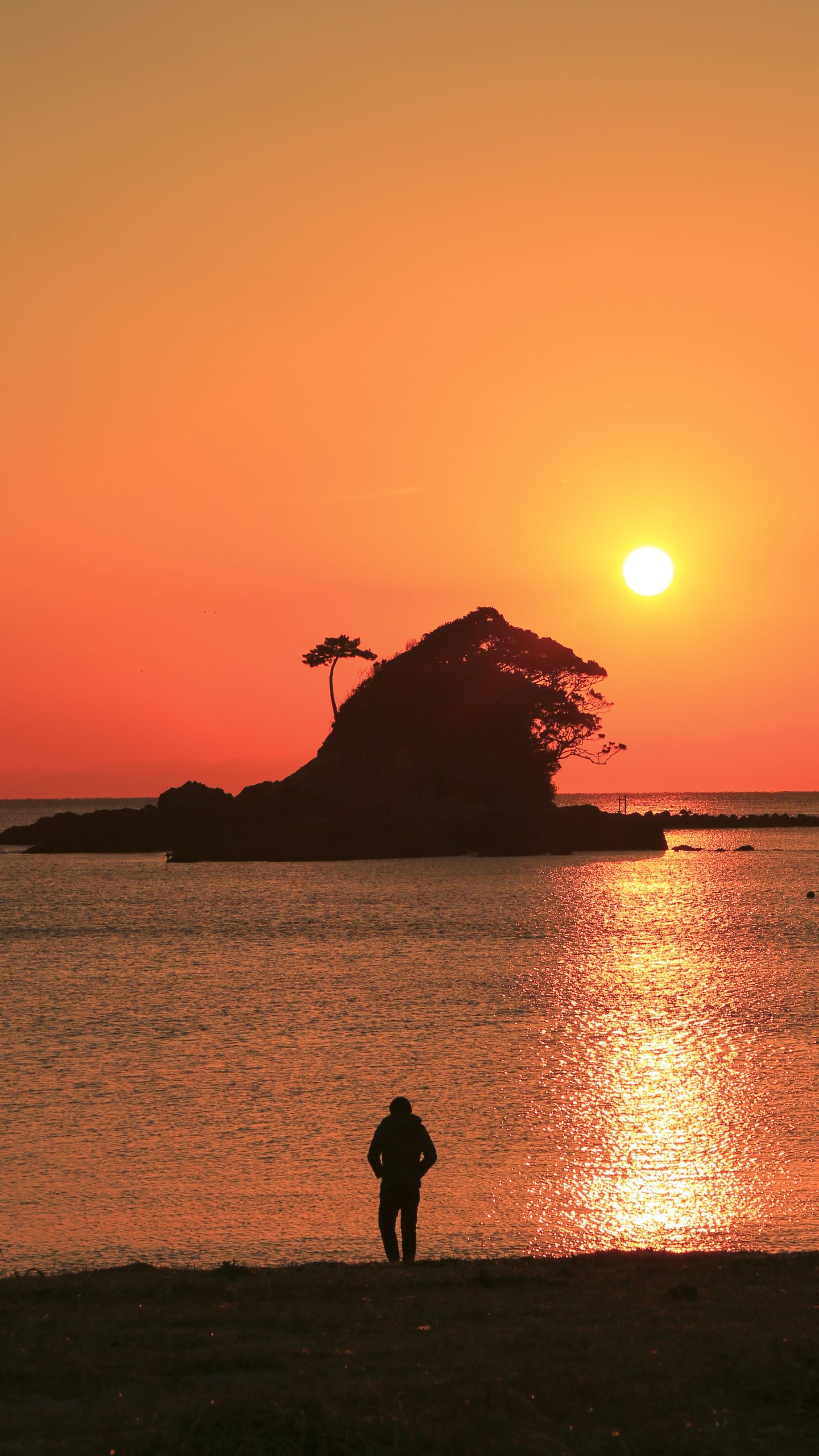 無料スマホ壁紙「ゴジラと夕陽を眺める人」はiPhone・Androidに対応した縦長の高画質な待ち受けです。三重県のあづり浜でふがまるちゃんが撮影した写真です。今月のカレンダーを合成や開運数字を追加するカスタマイズも可能です。商用利用OKのフリー写真素材ですが、利用規約を守ってご利用ください。