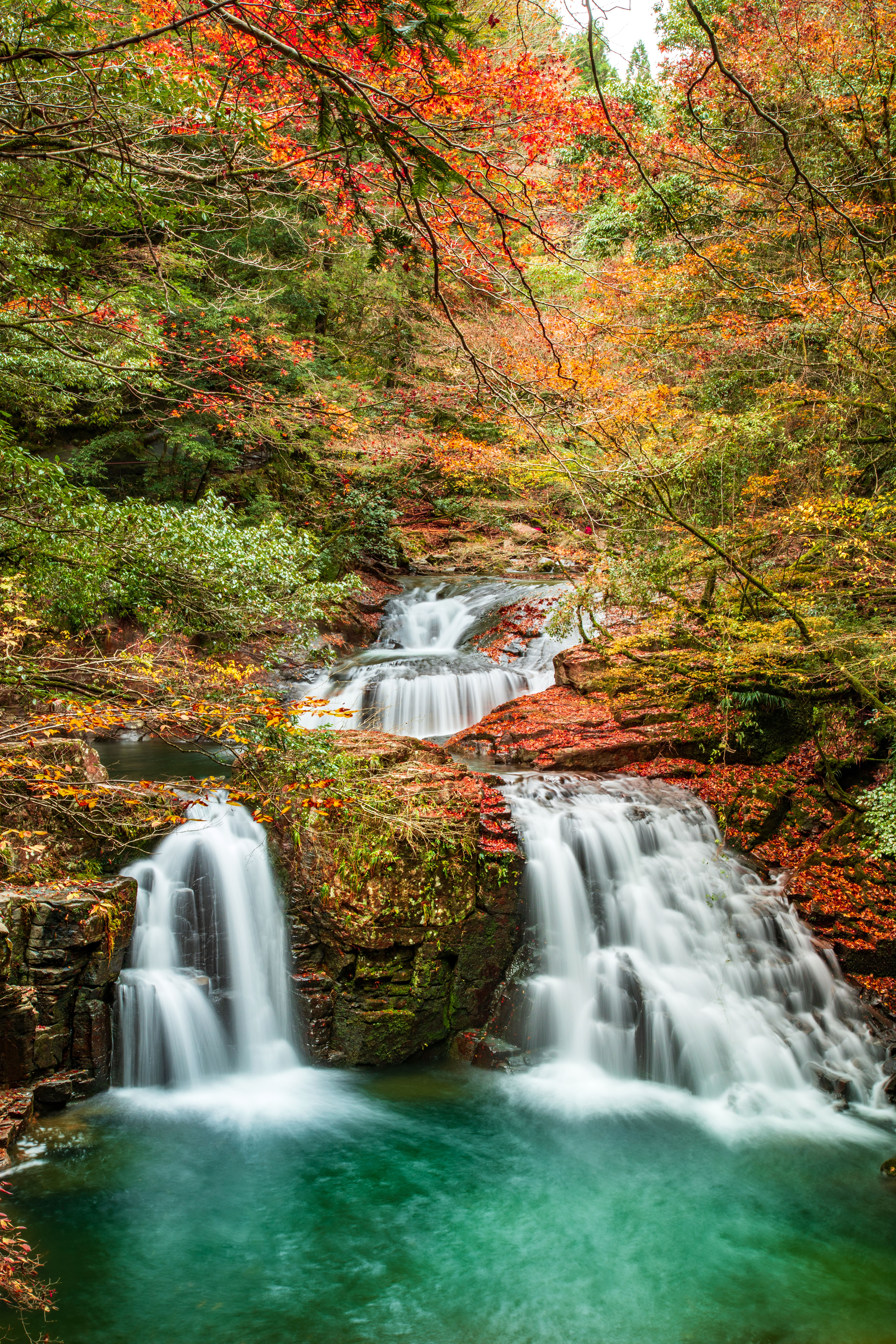 無料スマホ壁紙「荷担滝の紅葉美」はiPhone・Androidに対応した縦長の高画質な待ち受けです。三重県の赤目四十八滝でふがまるちゃんが撮影した写真です。今月のカレンダーを合成や開運数字を追加するカスタマイズも可能です。商用利用OKのフリー写真素材ですが、利用規約を守ってご利用ください。