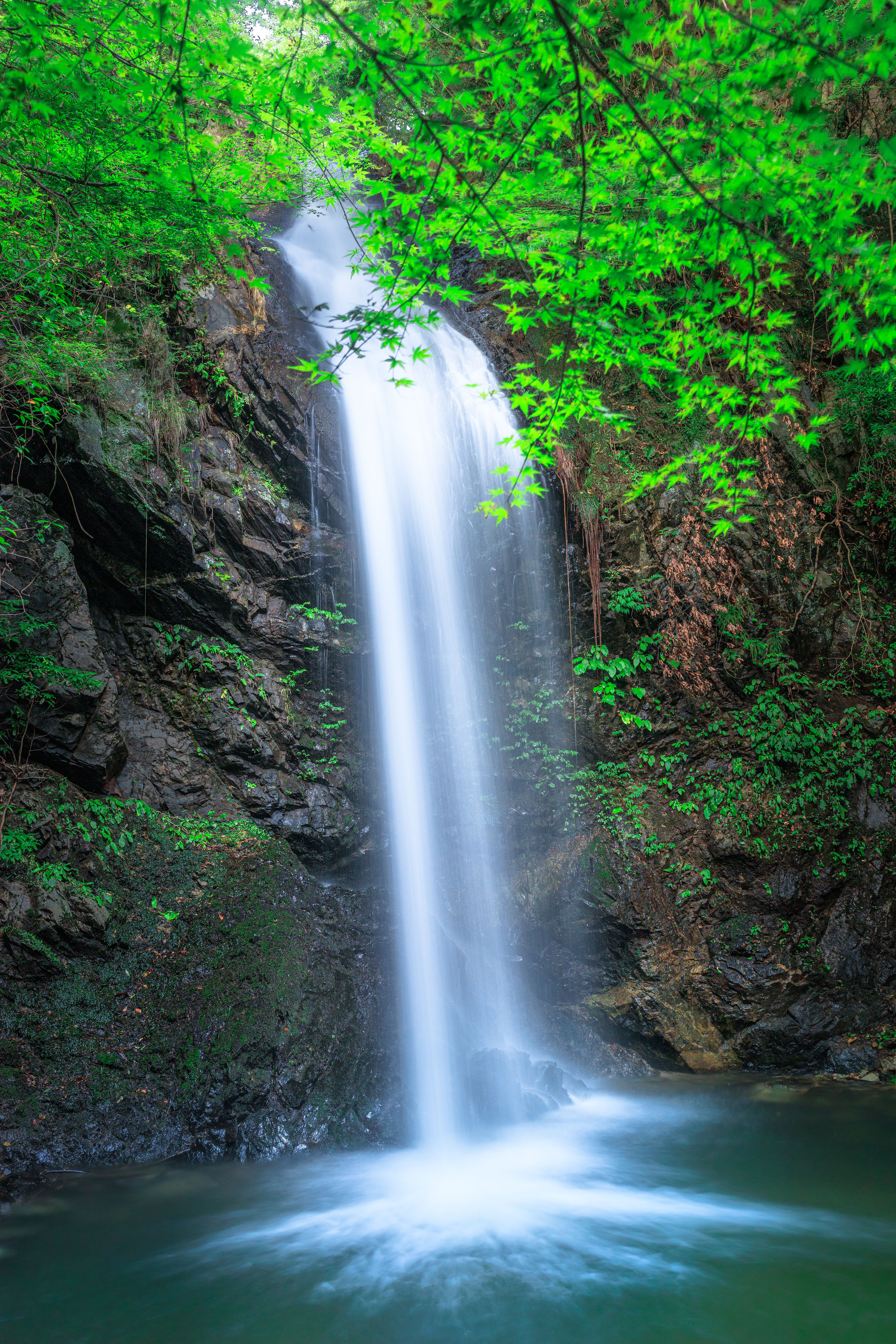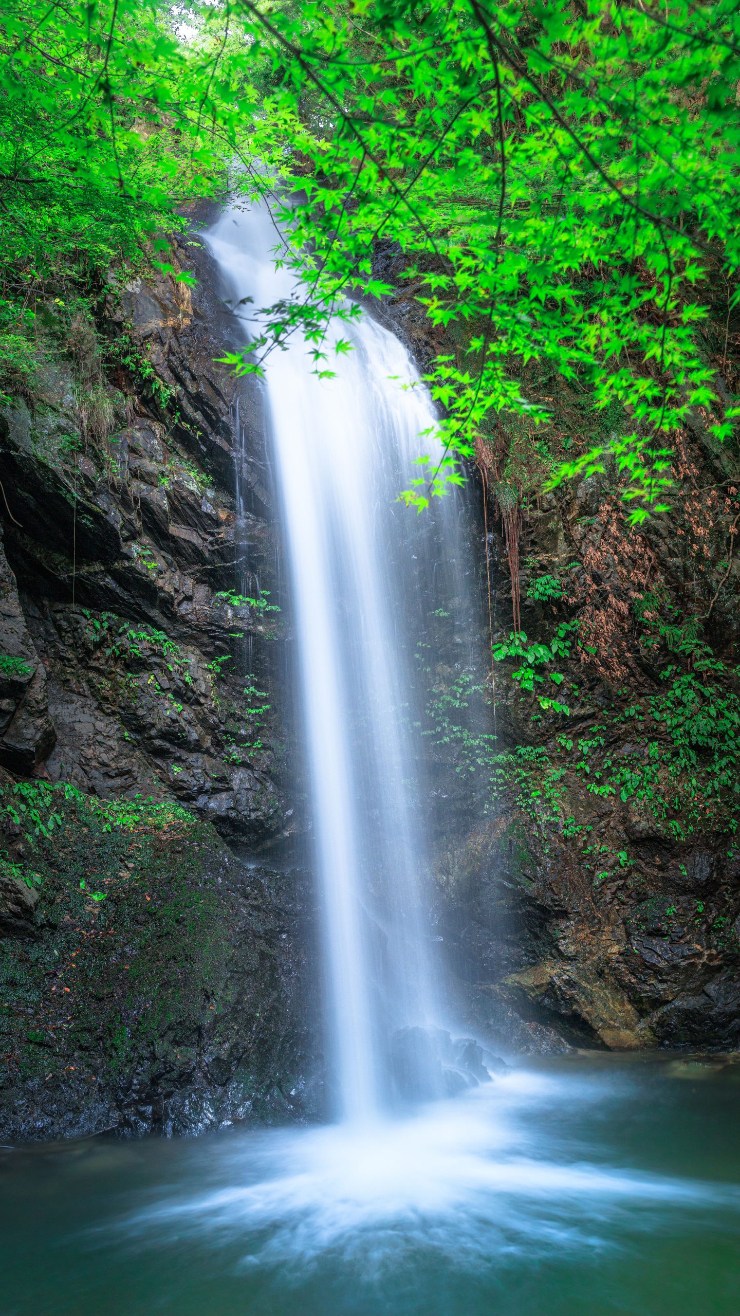 無料スマホ壁紙「青葉と滝」はiPhone・Androidに対応した縦長の高画質な待ち受けです。三重県の白藤滝でふがまるちゃんが撮影した写真です。今月のカレンダーを合成や開運数字を追加するカスタマイズも可能です。商用利用OKのフリー写真素材ですが、利用規約を守ってご利用ください。