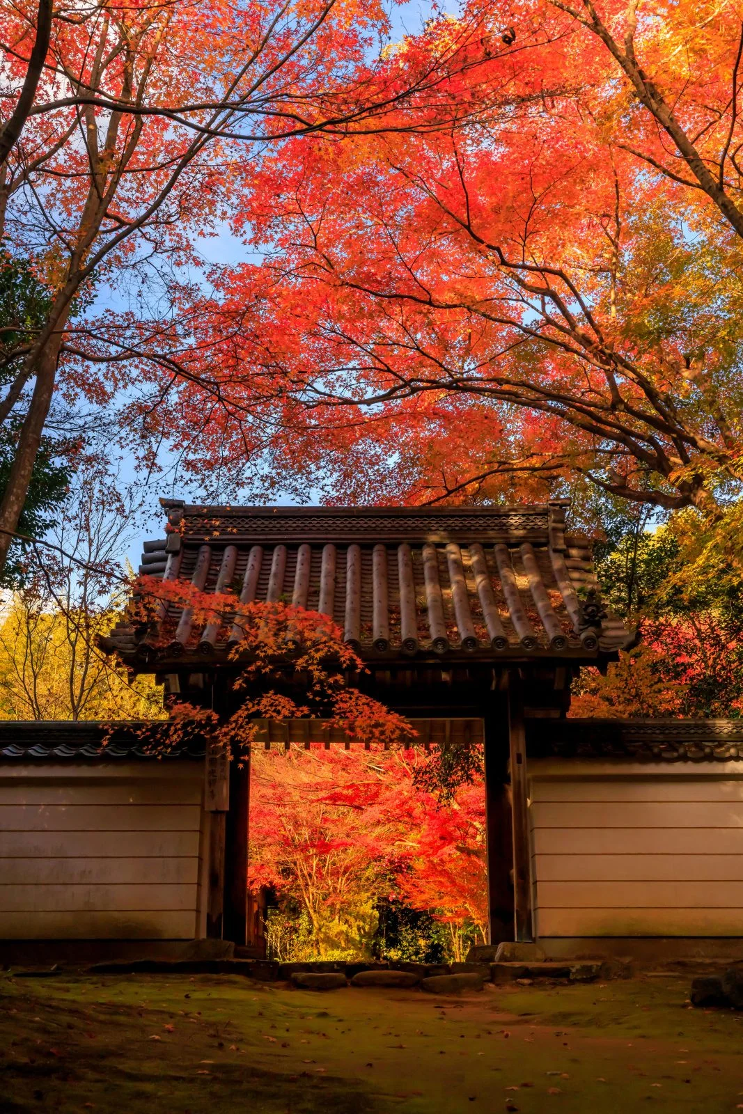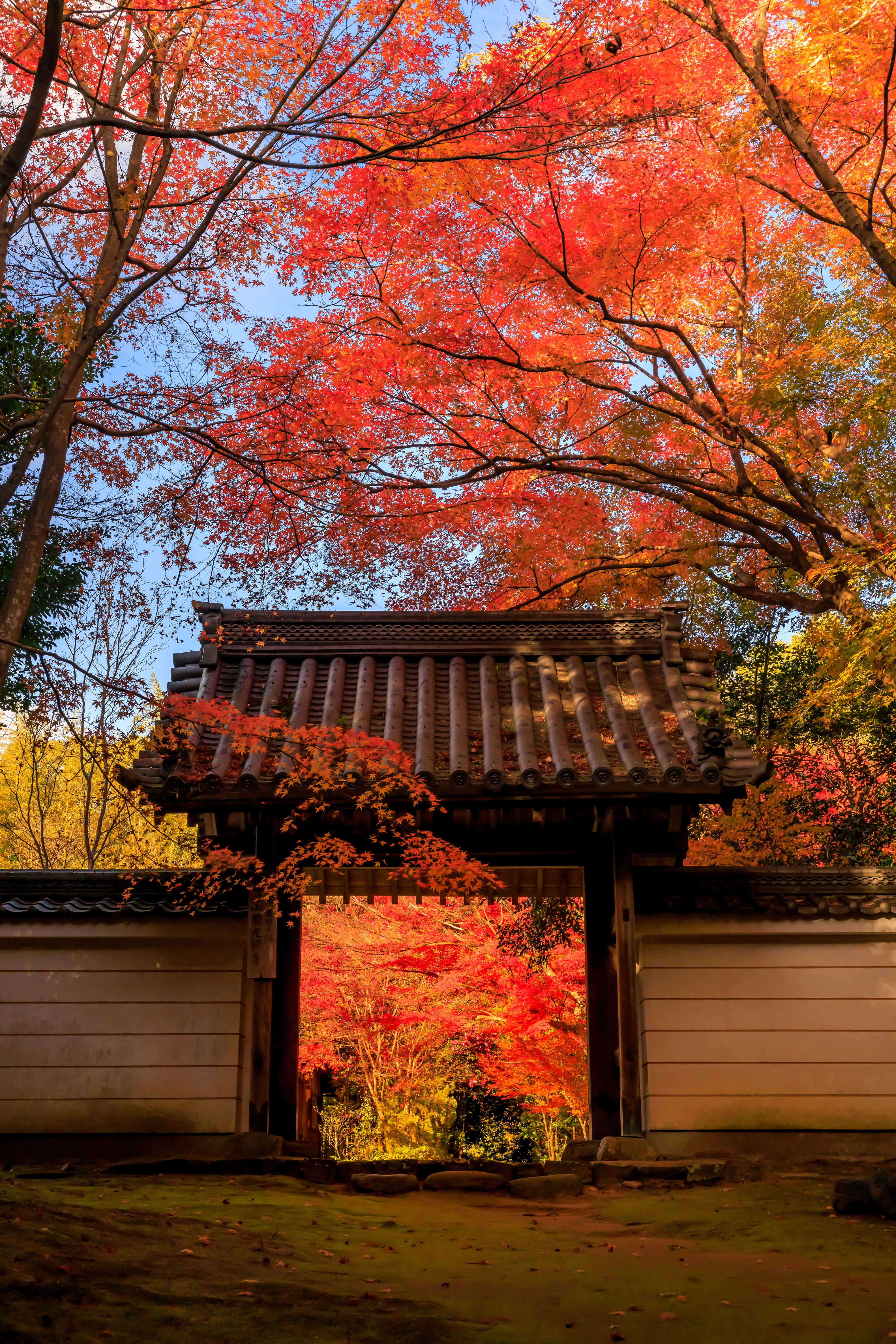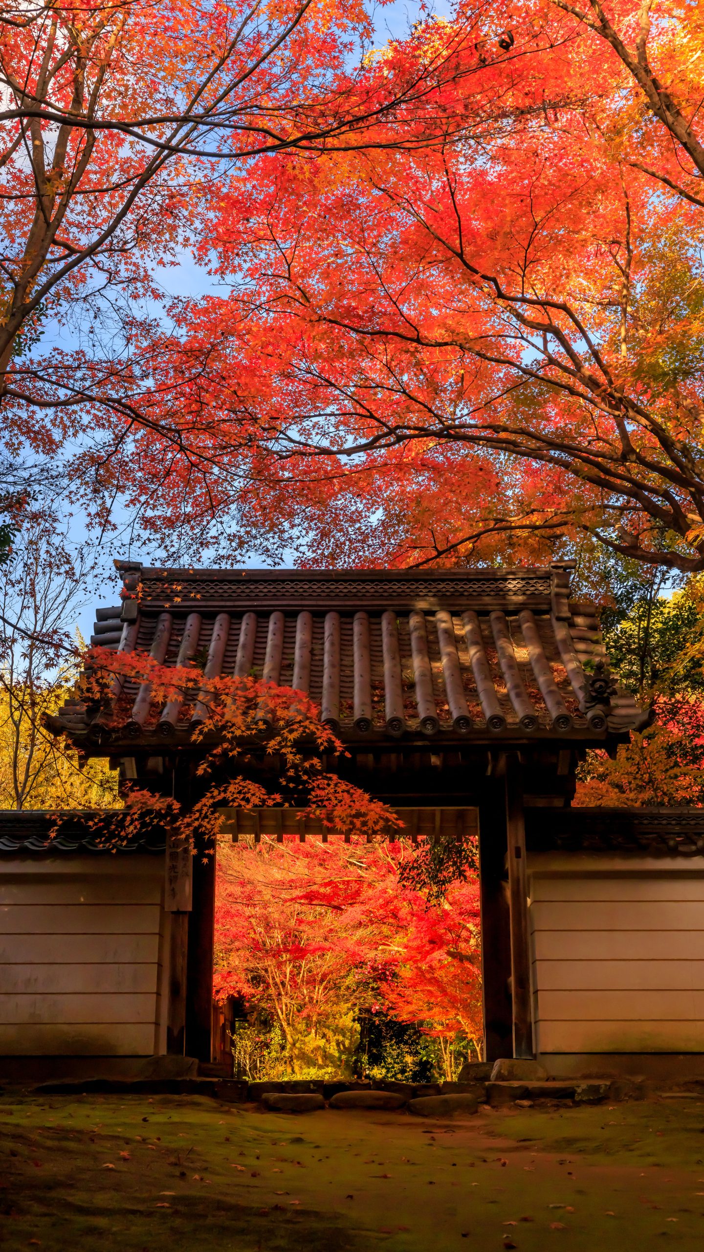 無料スマホ壁紙「山門と紅葉と青空」はiPhone・Androidに対応した縦長の高画質な待ち受けです。三重県の円光寺でふがまるちゃんが撮影した写真です。今月のカレンダーを合成や開運数字を追加するカスタマイズも可能です。商用利用OKのフリー写真素材ですが、利用規約を守ってご利用ください。