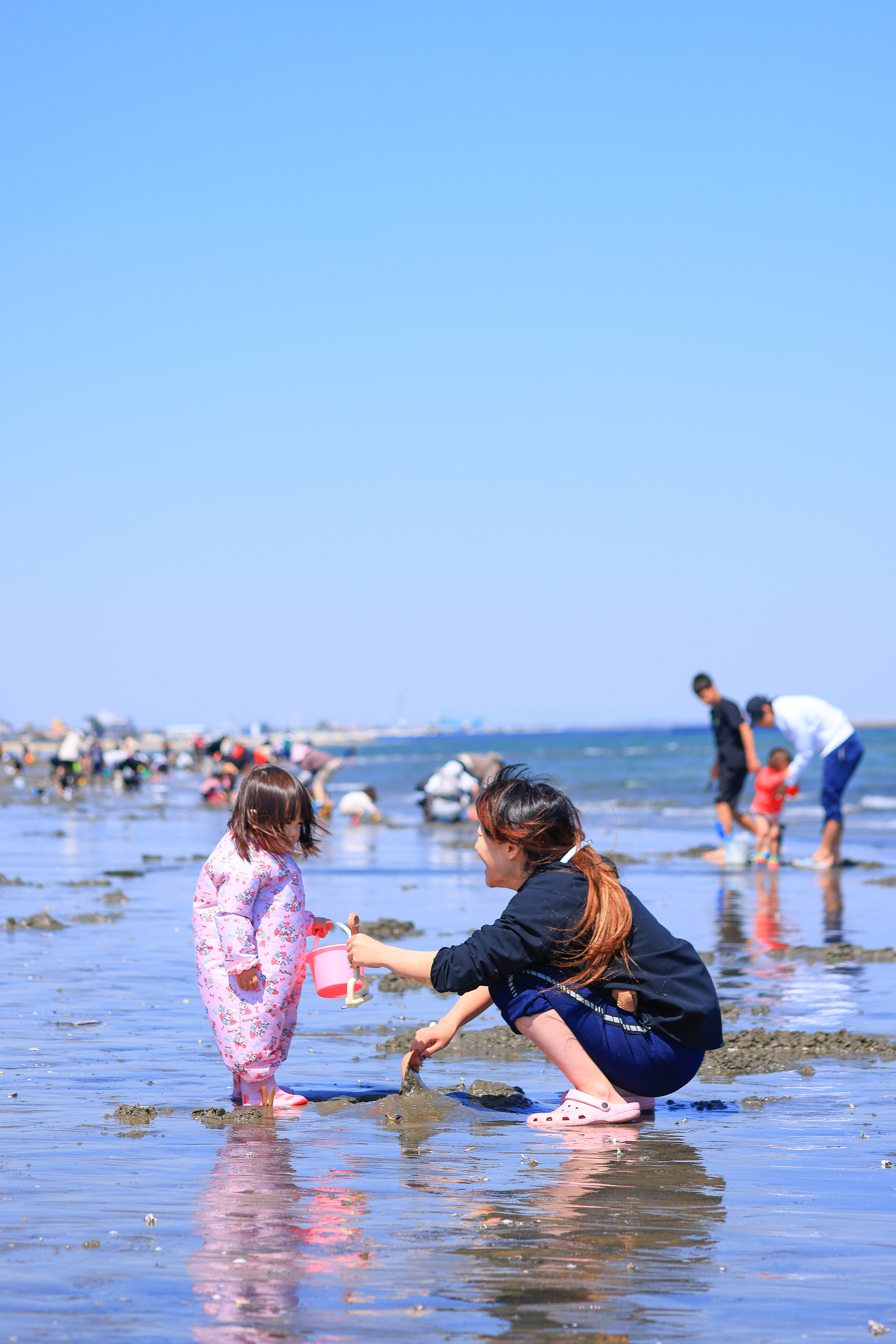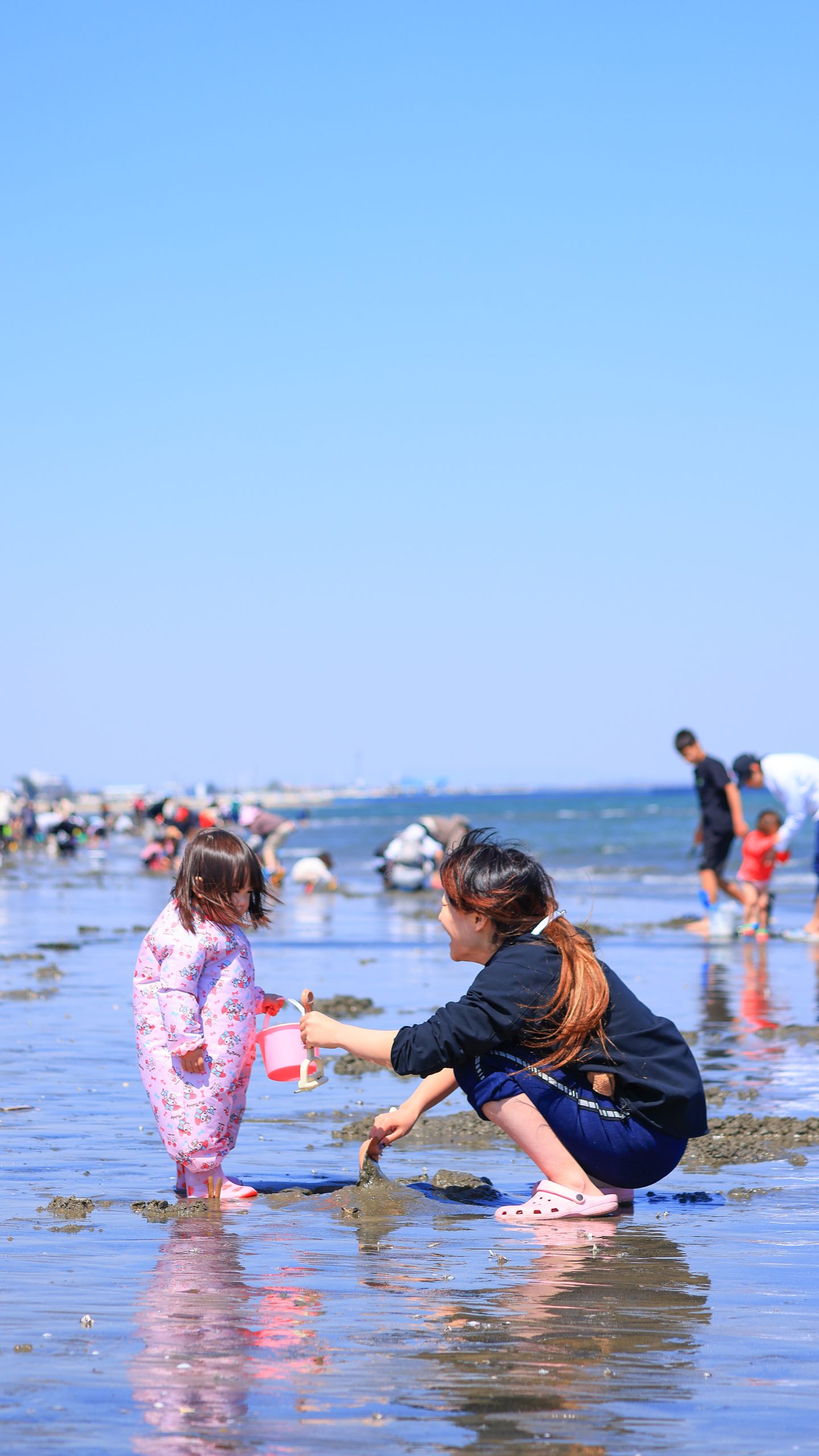 無料スマホ壁紙「潮干狩りを楽しむ親子」はiPhone・Androidに対応した縦長の高画質な待ち受けです。三重県の御殿場海岸でふがまるちゃんが撮影した写真です。今月のカレンダーを合成や開運数字を追加するカスタマイズも可能です。商用利用OKのフリー写真素材ですが、利用規約を守ってご利用ください。