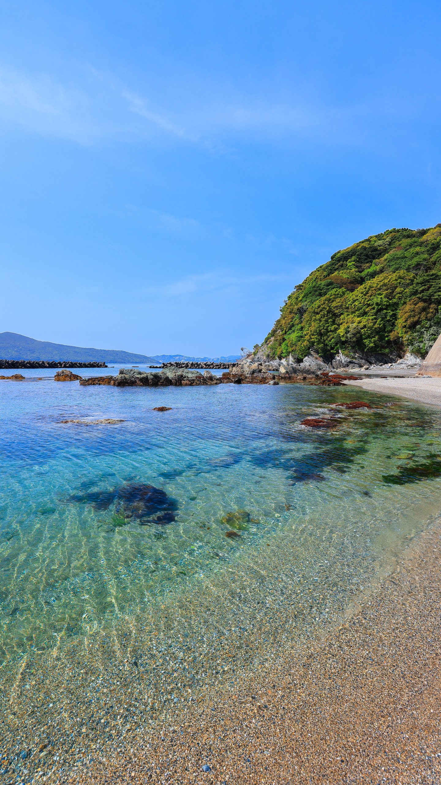 無料スマホ壁紙「和具サンシャインビーチ近くの海岸」はiPhone・Androidに対応した縦長の高画質な待ち受けです。三重県の答志島でふがまるちゃんが撮影した写真です。今月のカレンダーを合成や開運数字を追加するカスタマイズも可能です。商用利用OKのフリー写真素材ですが、利用規約を守ってご利用ください。