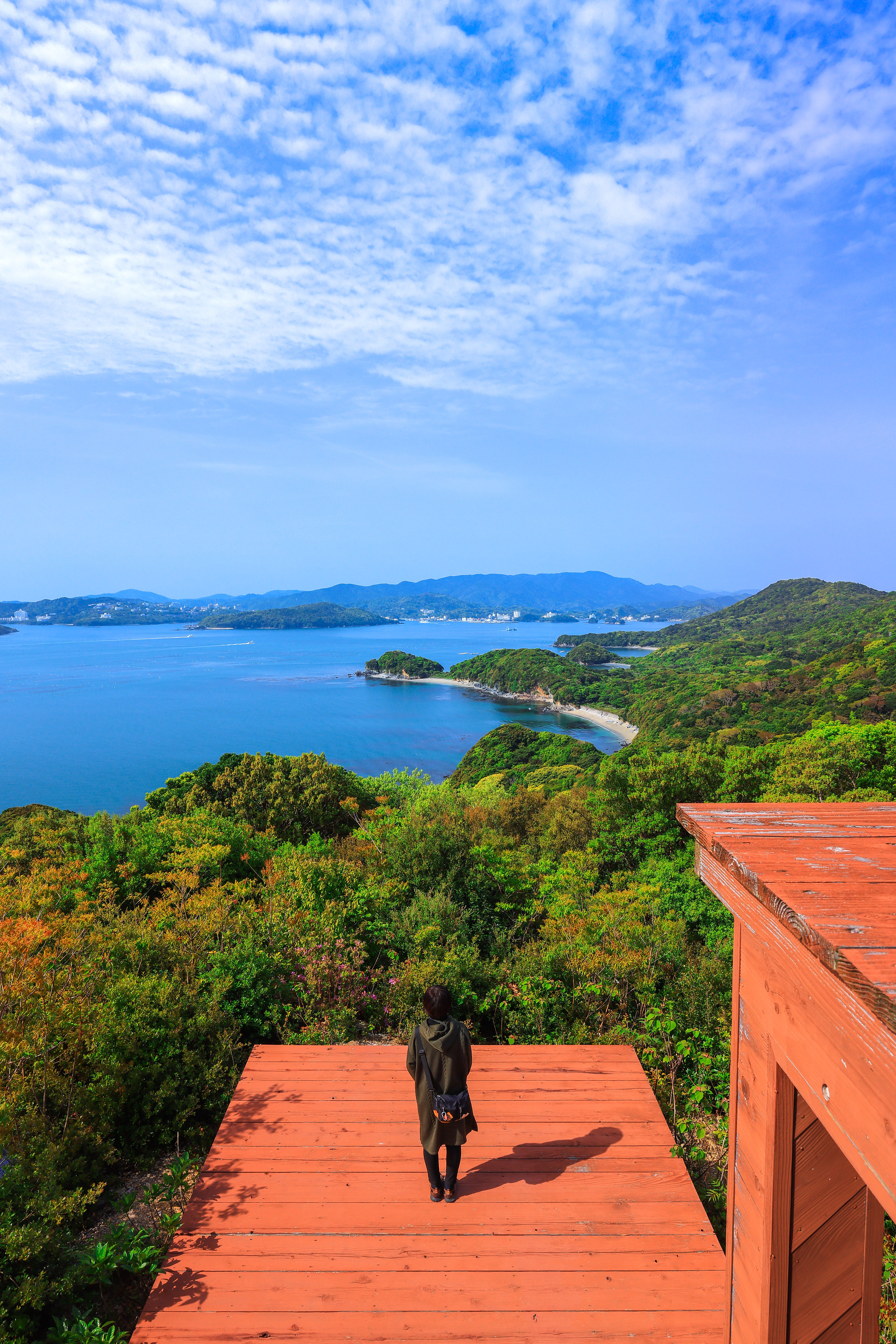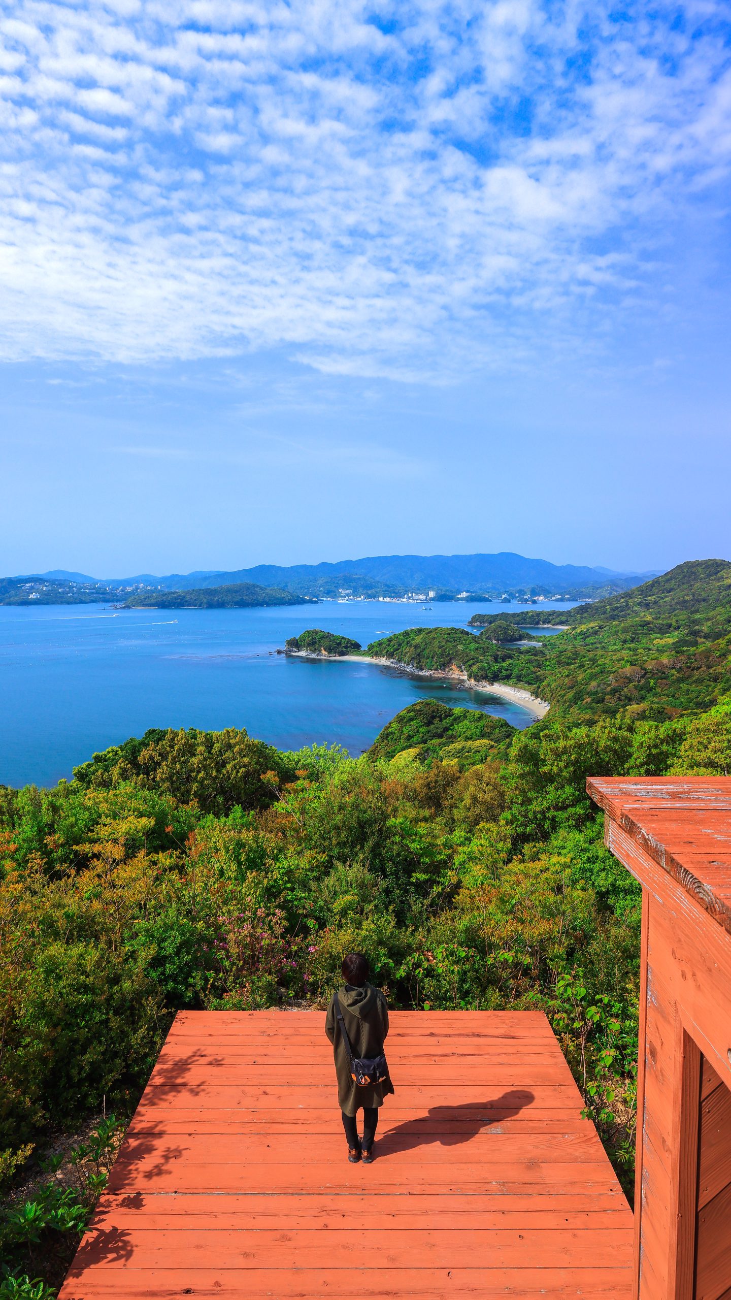 無料スマホ壁紙「天望山レイフィールドの展望デッキから鳥羽方面を眺める人」はiPhone・Androidに対応した縦長の高画質な待ち受けです。三重県の答志島でふがまるちゃんが撮影した写真です。今月のカレンダーを合成や開運数字を追加するカスタマイズも可能です。商用利用OKのフリー写真素材ですが、利用規約を守ってご利用ください。