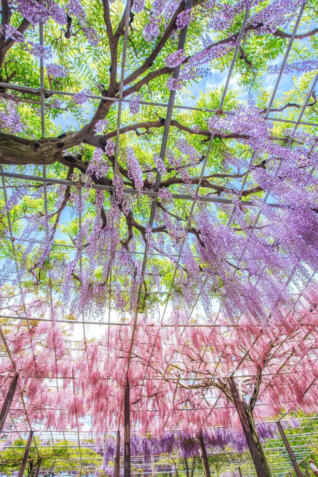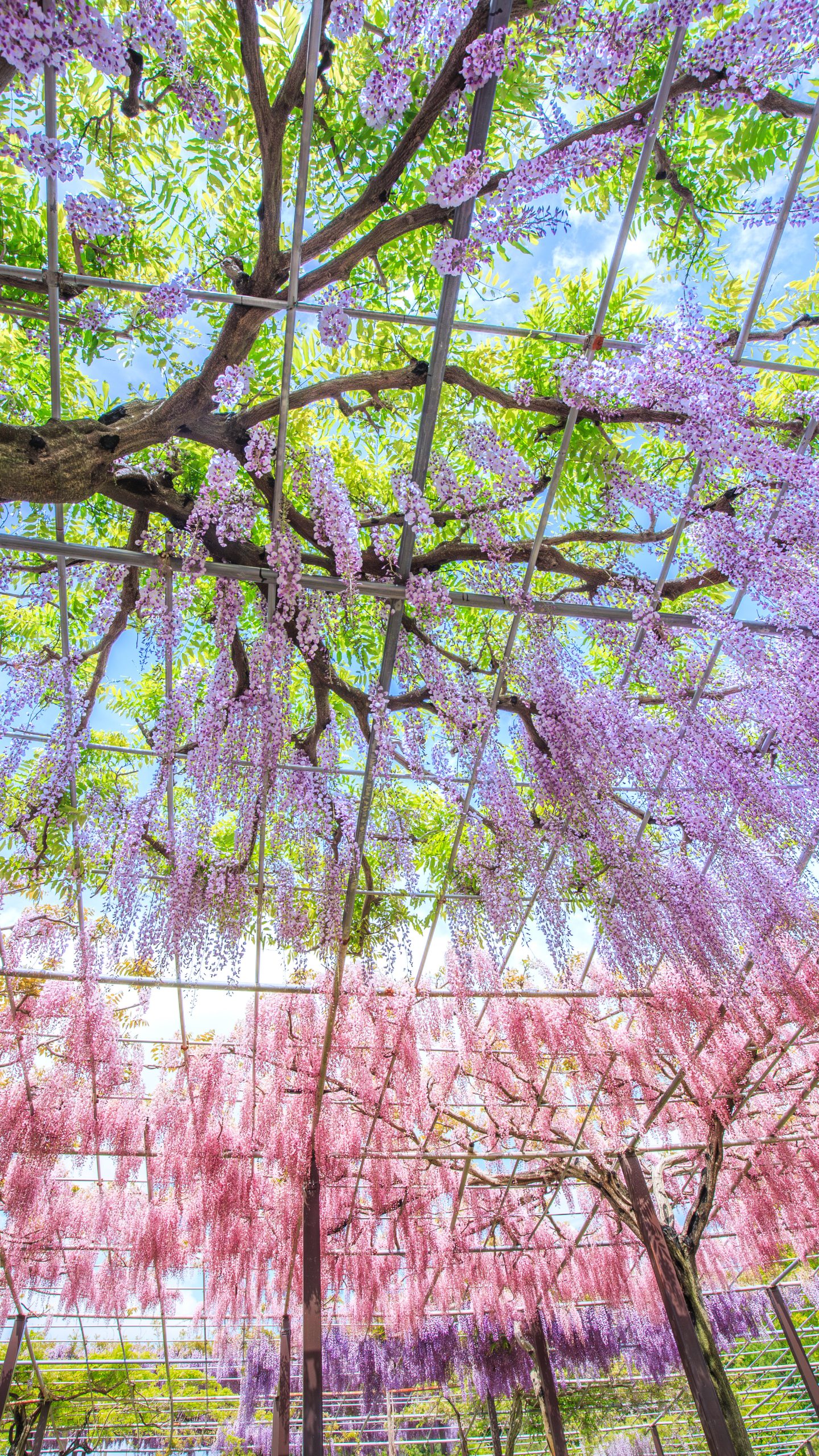 無料スマホ壁紙「紫・紅の藤カーテン」はiPhone・Androidに対応した縦長の高画質な待ち受けです。三重県のかざはやの里でふがまるちゃんが撮影した写真です。今月のカレンダーを合成や開運数字を追加するカスタマイズも可能です。商用利用OKのフリー写真素材ですが、利用規約を守ってご利用ください。