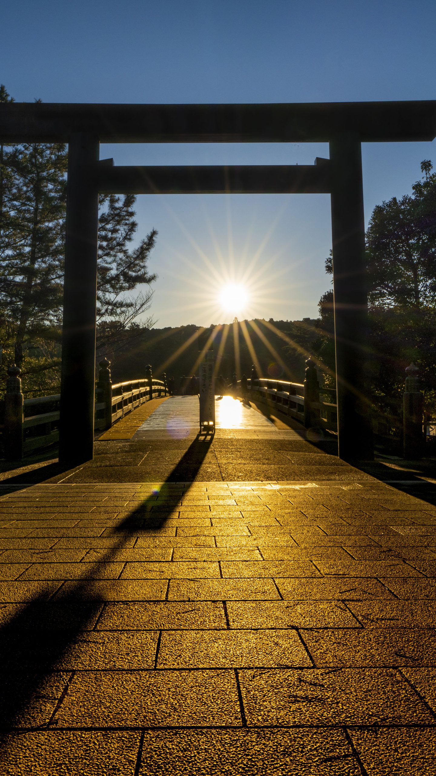 朝8時頃に最前列から撮影した写真です。少し太陽が真ん中からズレています。橋の真ん中にご来光を写す場合は太陽が出てくる瞬間を撮らないとダメだと分かりました。