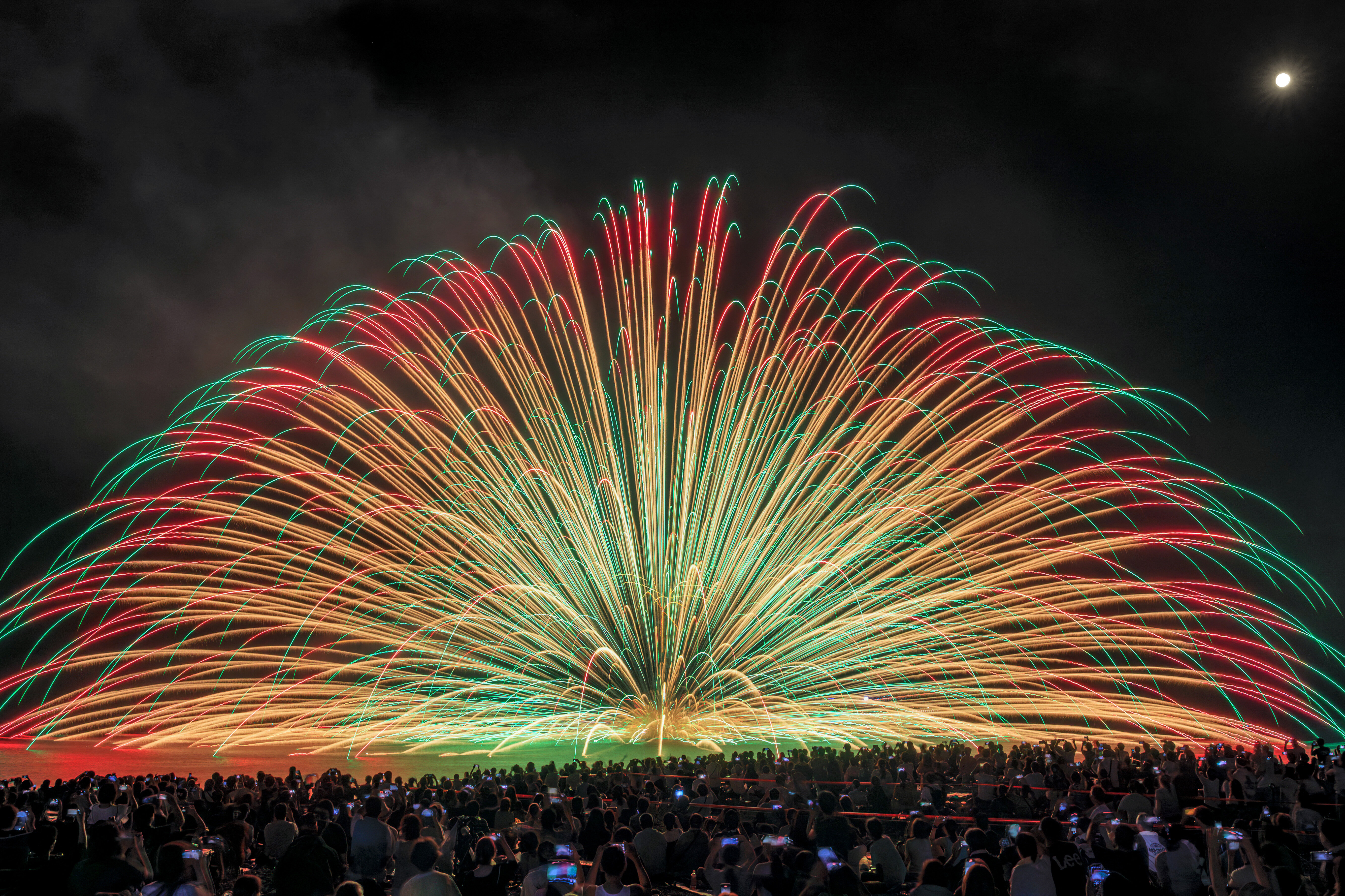 無料の写真素材「2024年の三尺玉海上自爆(アップ)」は高画質なPC壁紙とiPhone・Androidに対応した縦長のスマホ壁紙を無料でダウンロードできます。三重県の熊野大花火大会でふがまるちゃんが撮影した写真です。商用利用OKのフリー写真素材ですが、利用規約を守ってご利用ください。