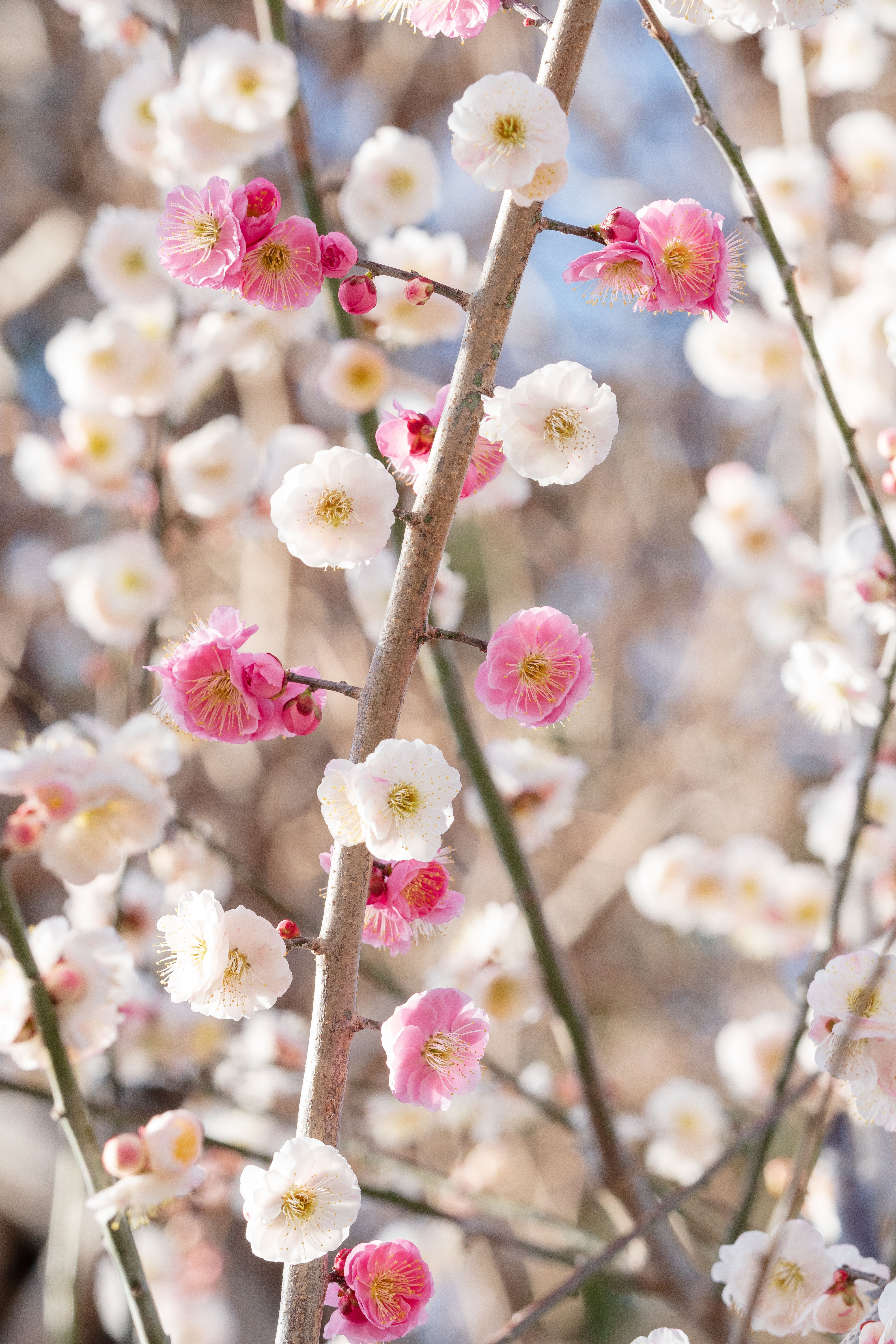 無料スマホ壁紙「紅白の梅」はiPhone・Androidに対応した縦長の高画質な待ち受けです。三重県のかざはやの里でふがまるちゃんが撮影した写真です。今月のカレンダーを合成や開運数字を追加するカスタマイズも可能です。商用利用OKのフリー写真素材ですが、利用規約を守ってご利用ください。