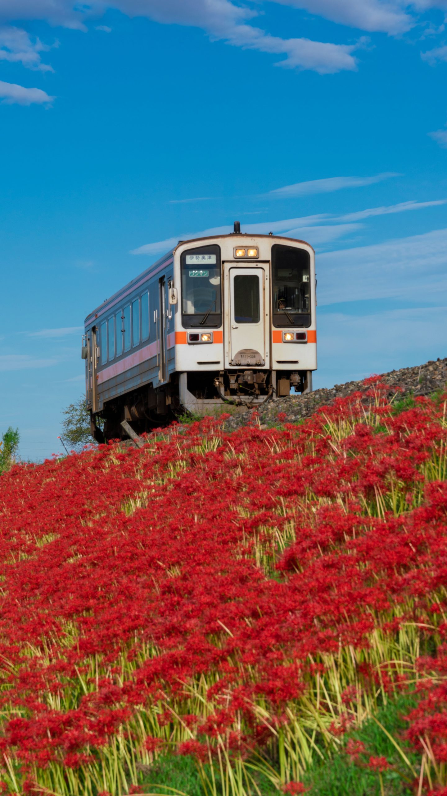 無料スマホ壁紙「青空と彼岸花と名松線」はiPhone・Androidに対応した縦長の高画質な待ち受けです。三重県の名松線でふがまるちゃんが撮影した写真です。今月のカレンダーを合成や開運数字を追加するカスタマイズも可能です。商用利用OKのフリー写真素材ですが、利用規約を守ってご利用ください。