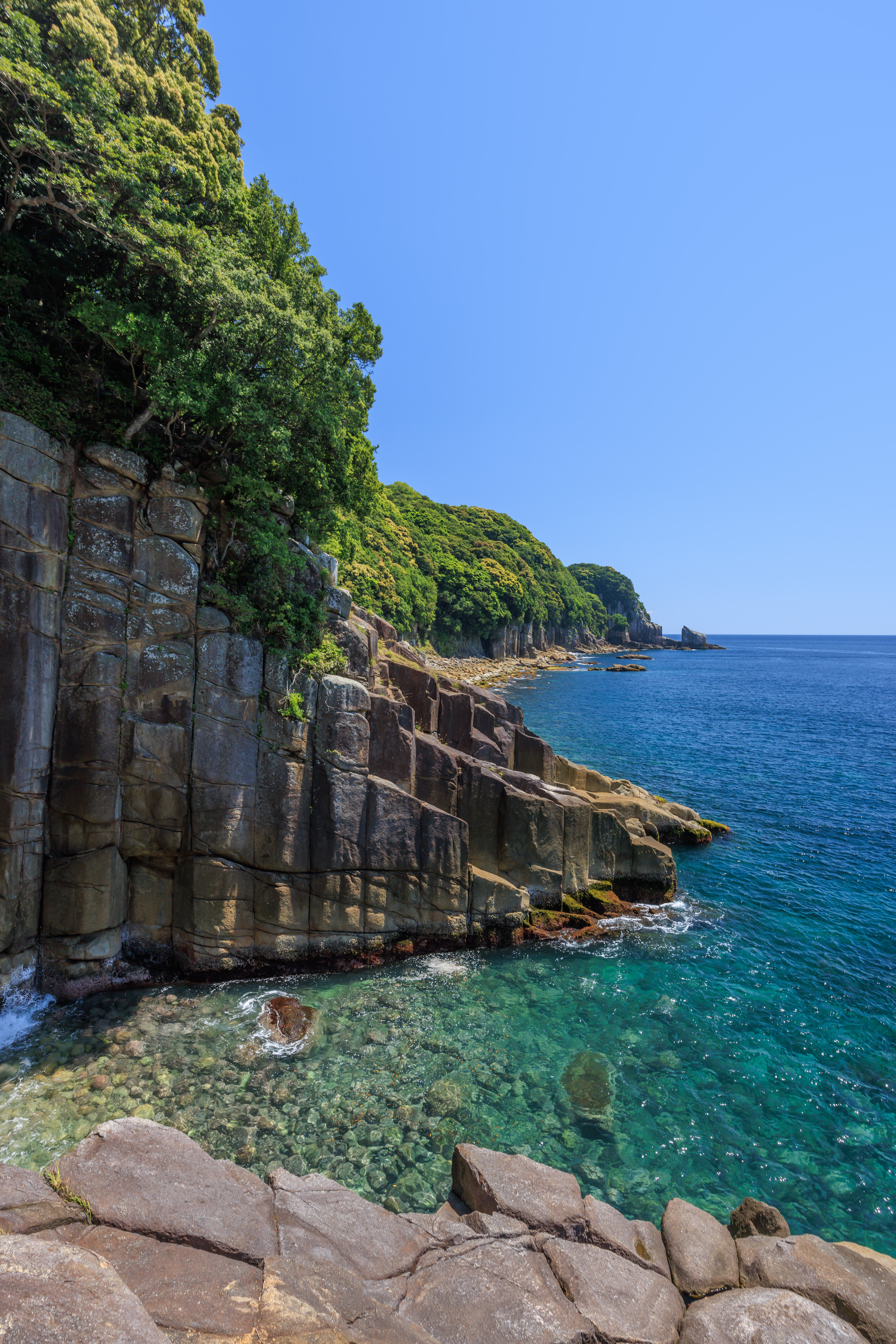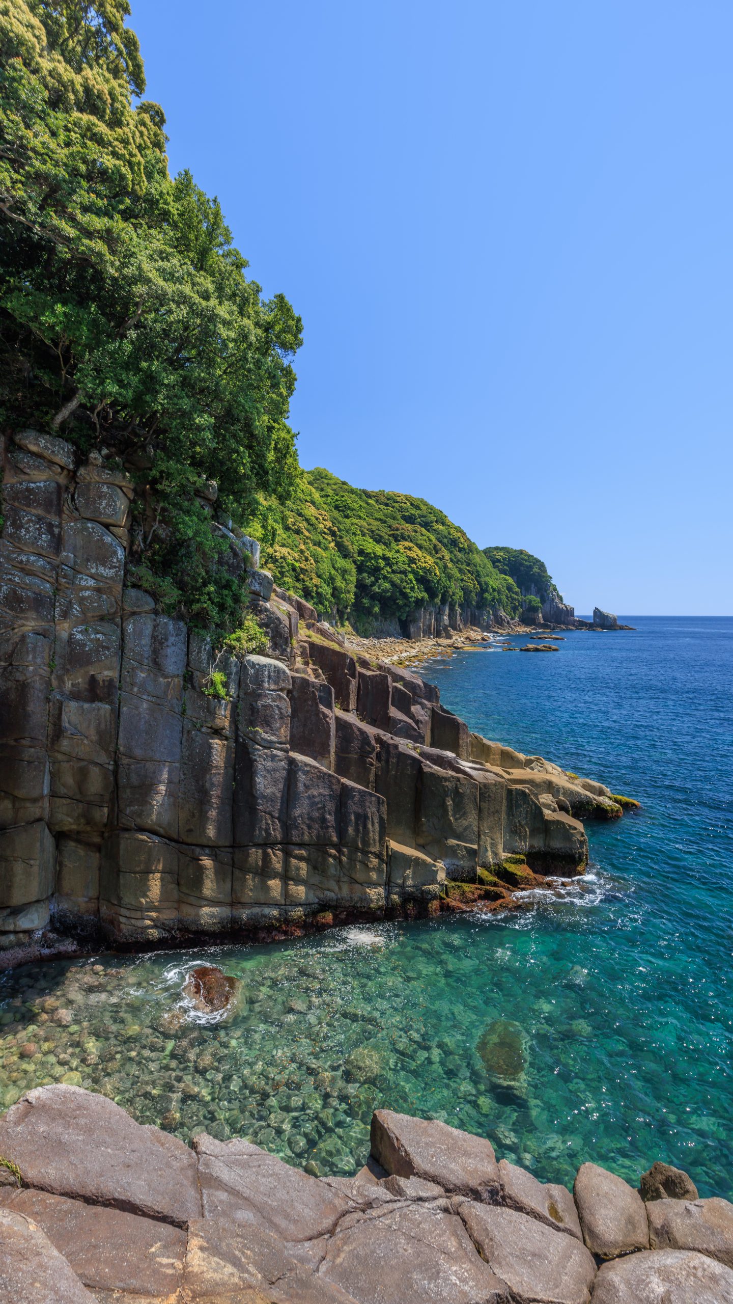 無料スマホ壁紙「柱状節理とエメラルドブルーの海」はiPhone・Androidに対応した縦長の高画質な待ち受けです。三重県の盛松でふがまるちゃんが撮影した写真です。今月のカレンダーを合成や開運数字を追加するカスタマイズも可能です。商用利用OKのフリー写真素材ですが、利用規約を守ってご利用ください。