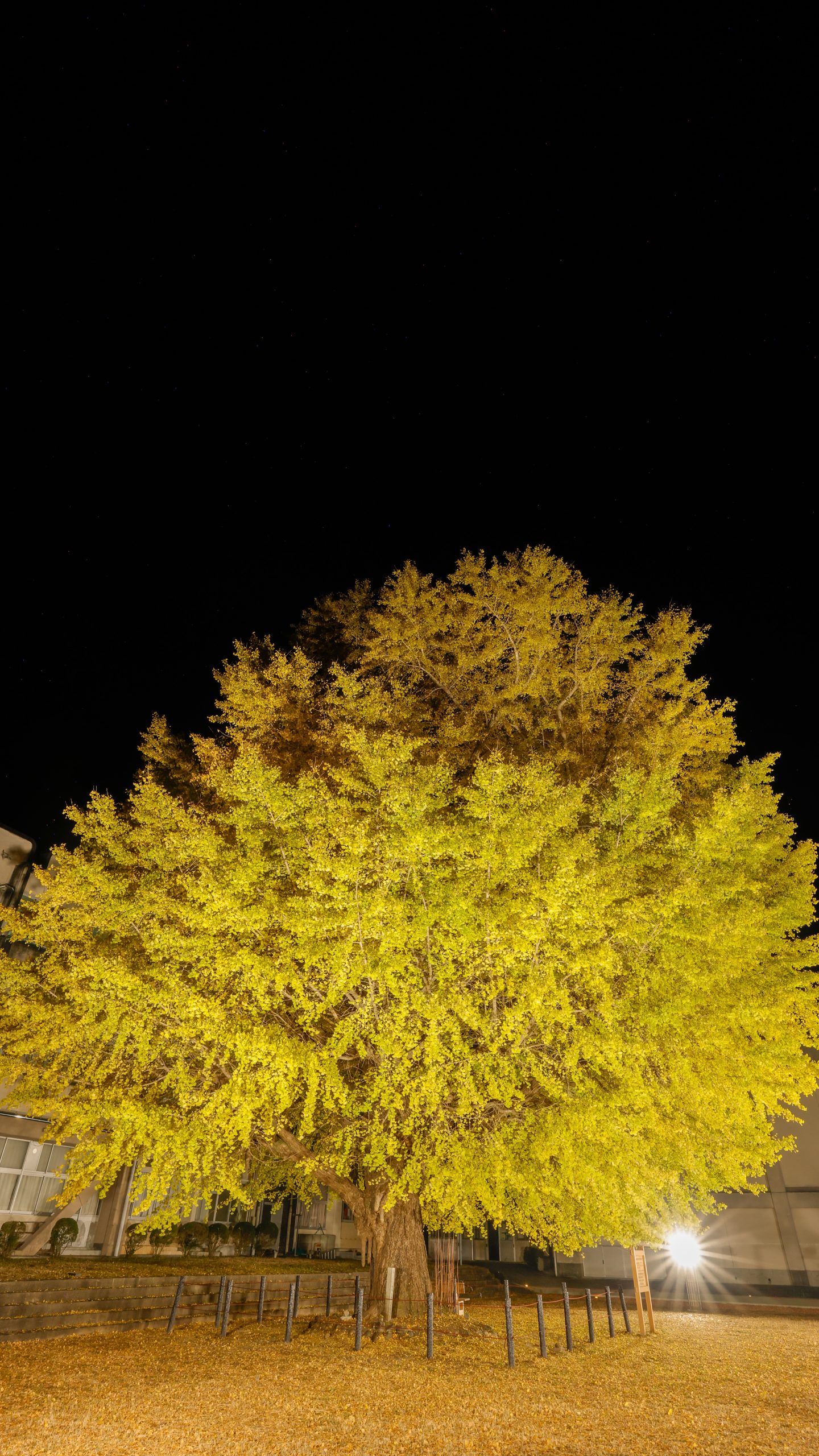 無料スマホ壁紙「真っ暗な空と大銀杏のライトアップ」はiPhone・Androidに対応した縦長の高画質な待ち受けです。三重県の旧穂原小学校の大イチョウでふがまるちゃんが撮影した写真です。今月のカレンダーを合成や開運数字を追加するカスタマイズも可能です。商用利用OKのフリー写真素材ですが、利用規約を守ってご利用ください。