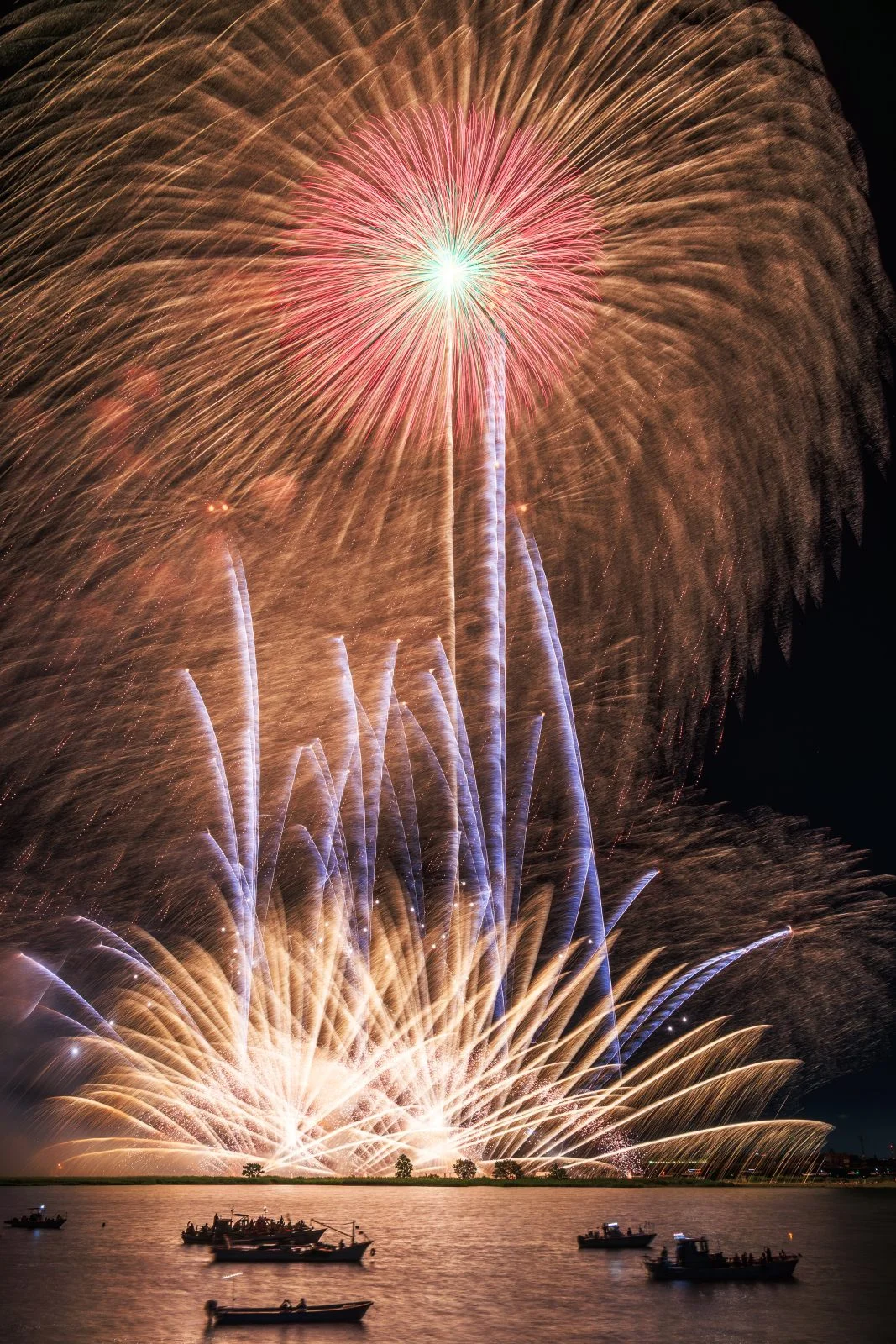 無料スマホ壁紙「2尺玉と連発花火」はiPhone・Androidに対応した縦長の高画質な待ち受けです。三重県の桑名水郷花火大会でふがまるちゃんが撮影した写真です。今月のカレンダーを合成や開運数字を追加するカスタマイズも可能です。商用利用OKのフリー写真素材ですが、利用規約を守ってご利用ください。