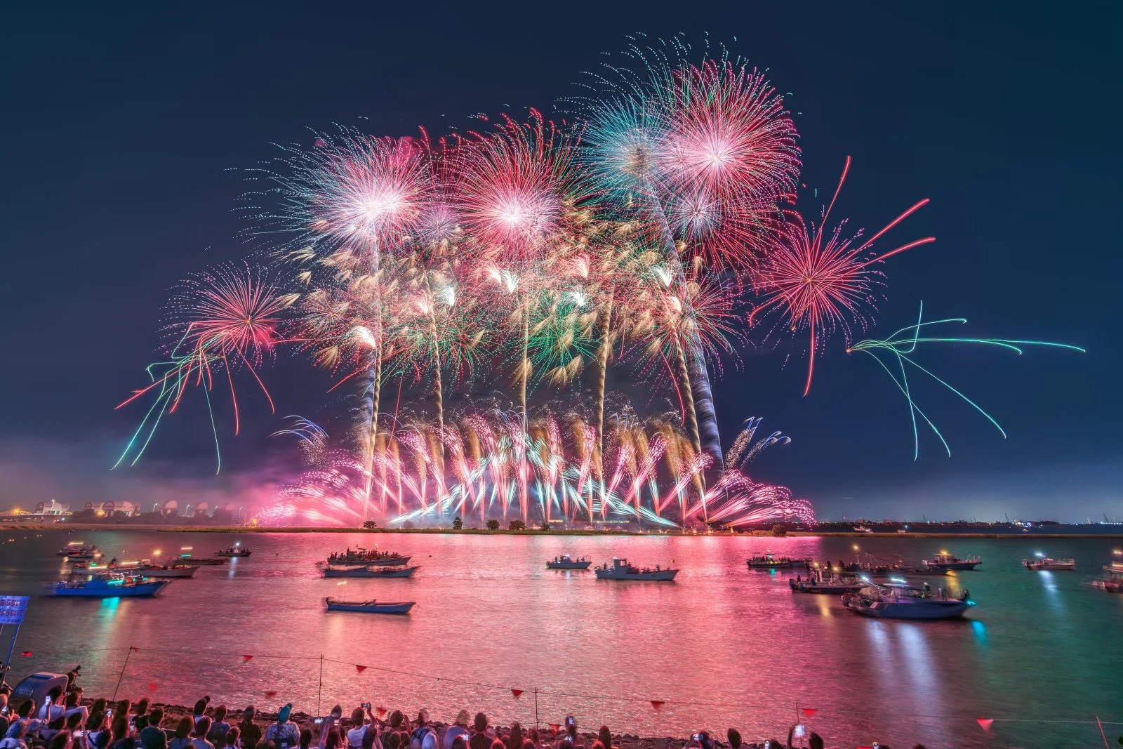 無料の写真素材「夜空に輝くピンクの連発花火」は高画質なPC壁紙とiPhone・Androidに対応した縦長のスマホ壁紙を無料でダウンロードできます。三重県の桑名水郷花火大会でふがまるちゃんが撮影した写真です。商用利用OKのフリー写真素材ですが、利用規約を守ってご利用ください。