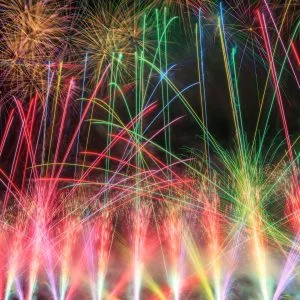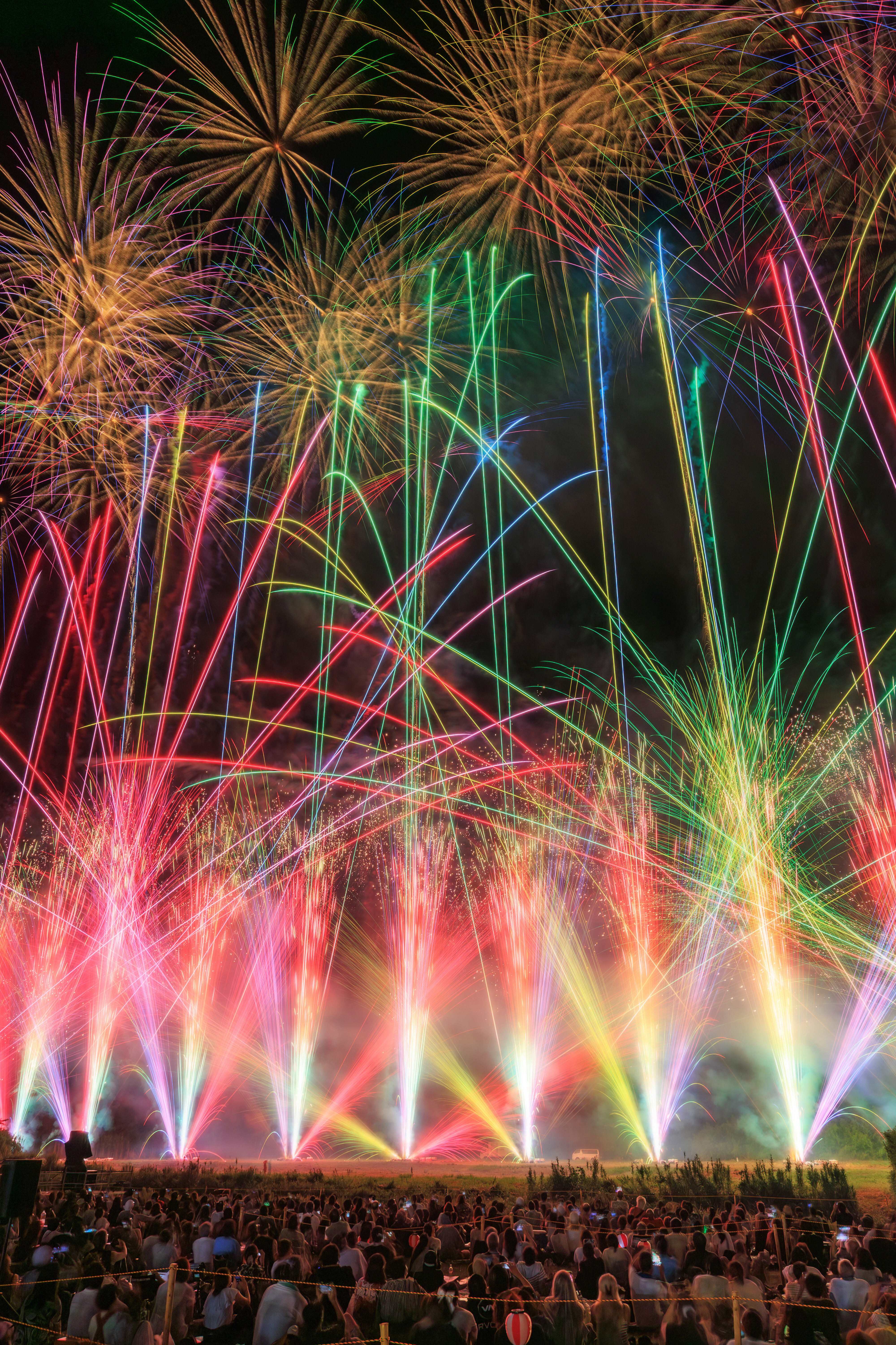 スマホ壁紙 📱 虹色に輝く豪華な連発花火