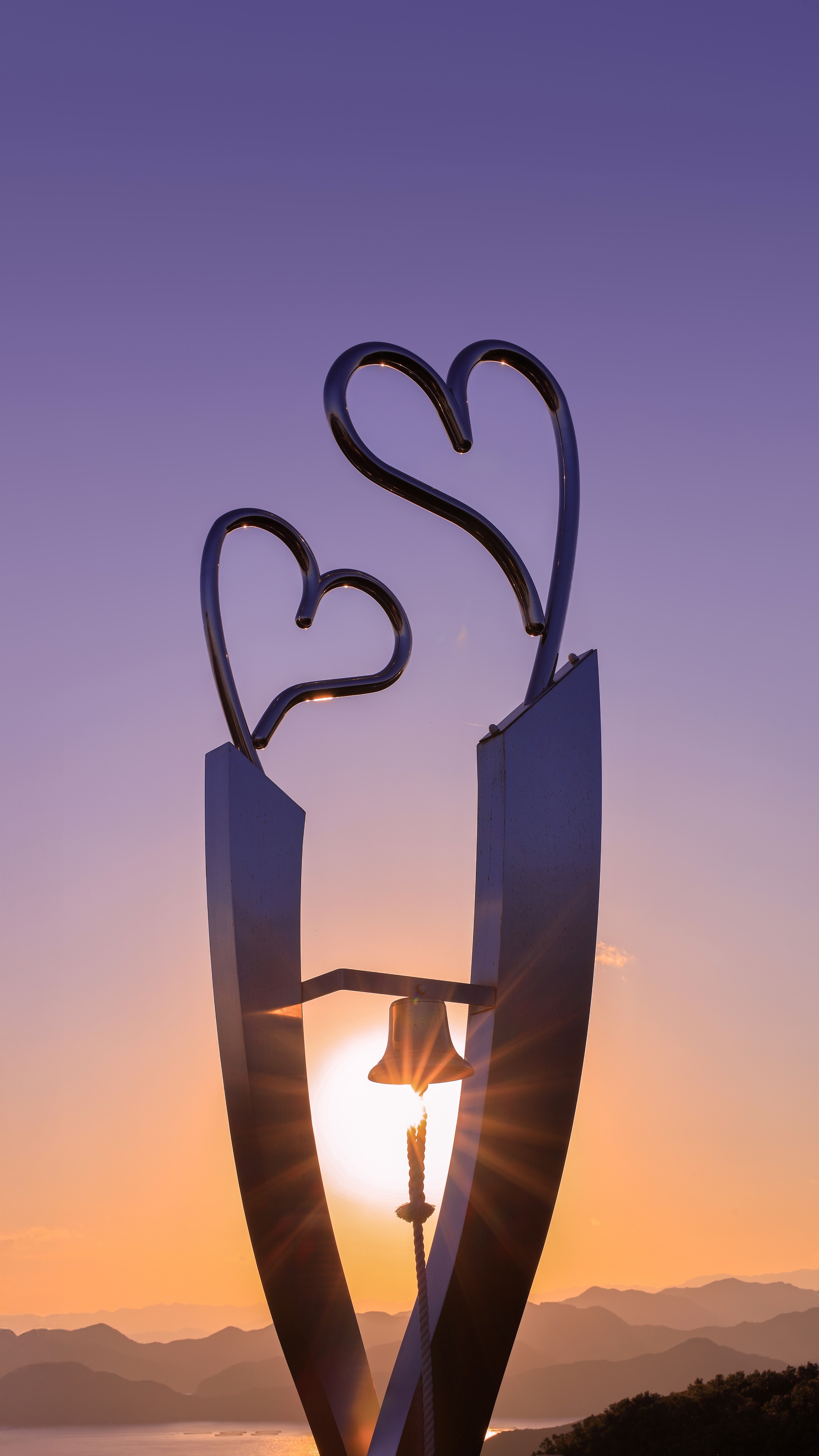 無料スマホ壁紙「幸せを呼ぶ鐘と夕陽」はiPhone・Androidに対応した縦長の高画質な待ち受けです。三重県の見江島展望台でふがまるちゃんが撮影した写真です。今月のカレンダーを合成や開運数字を追加するカスタマイズも可能です。商用利用OKのフリー写真素材ですが、利用規約を守ってご利用ください。