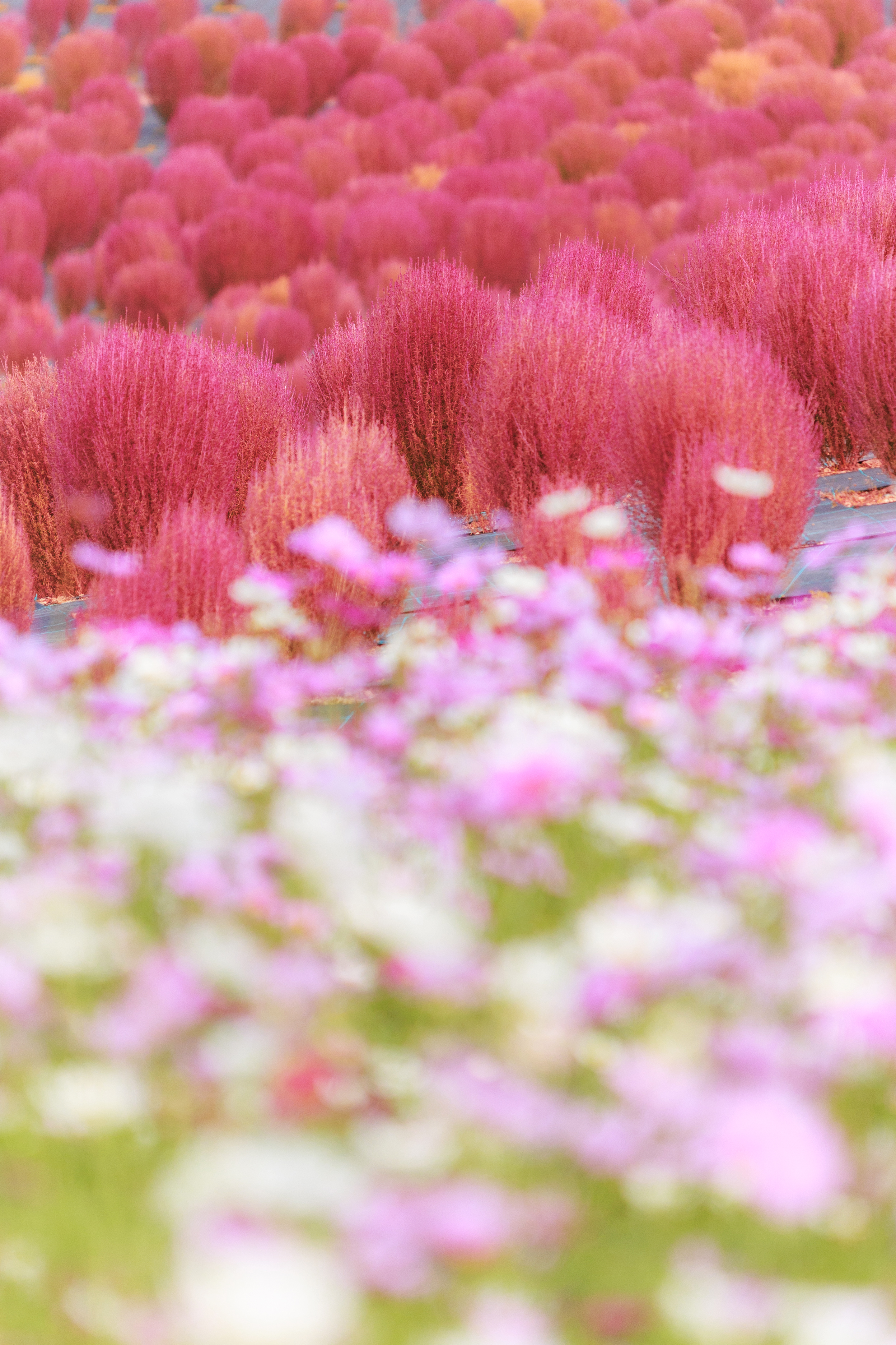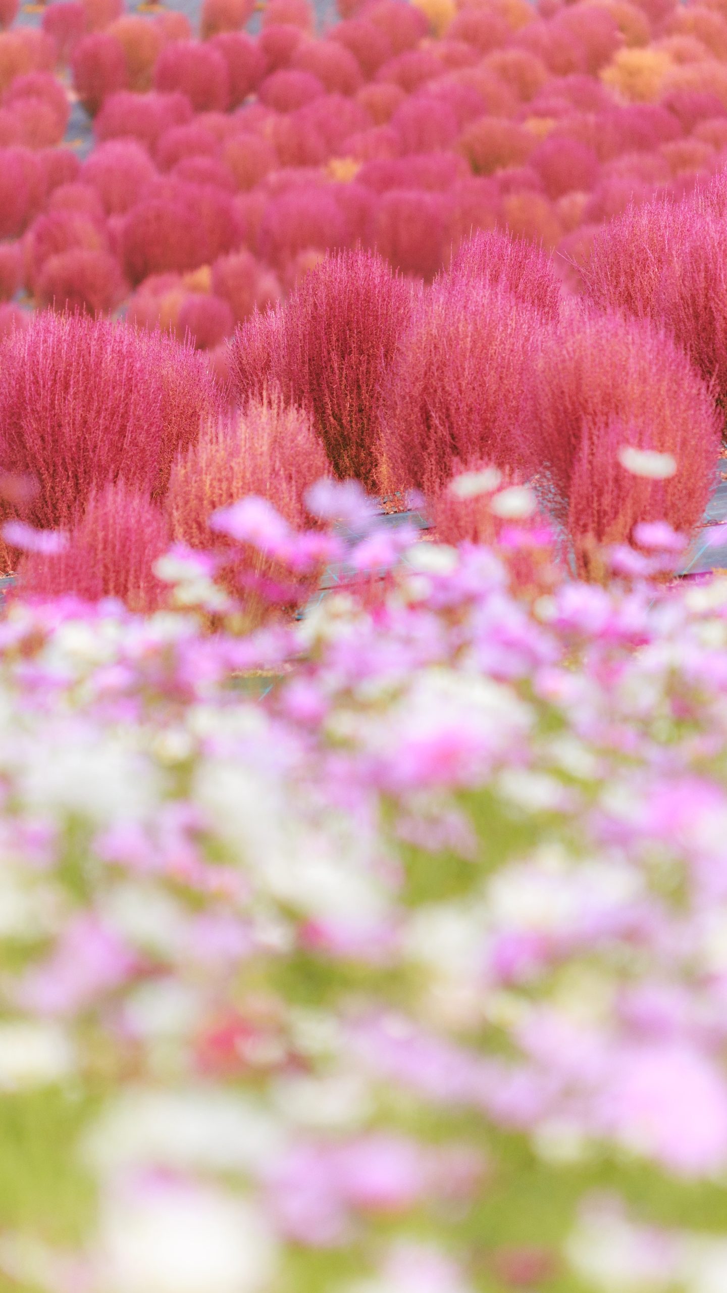 無料スマホ壁紙「コキアとコスモスの共演」はiPhone・Androidに対応した縦長の高画質な待ち受けです。三重県の志摩市観光農園でふがまるちゃんが撮影した写真です。今月のカレンダーを合成や開運数字を追加するカスタマイズも可能です。商用利用OKのフリー写真素材ですが、利用規約を守ってご利用ください。