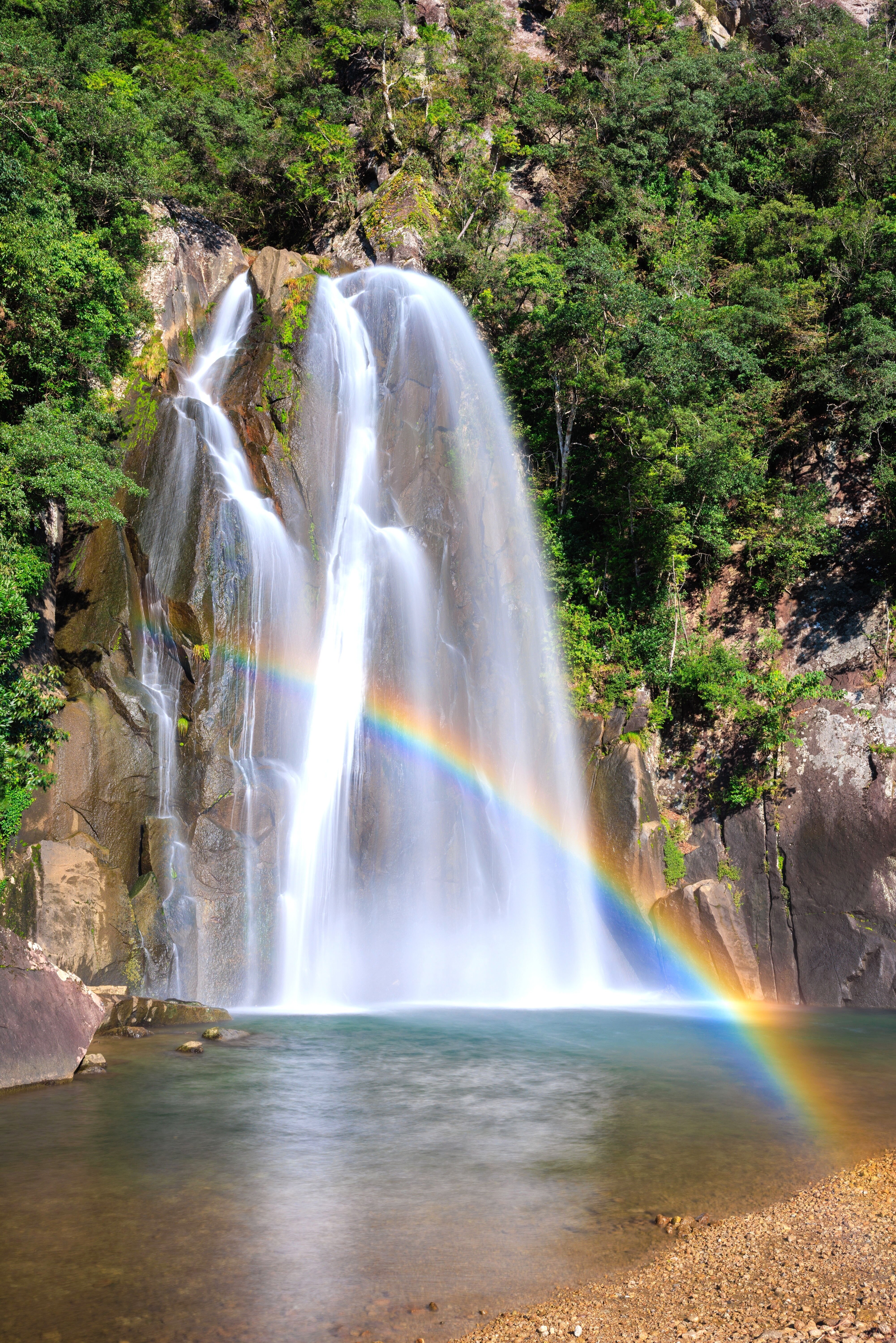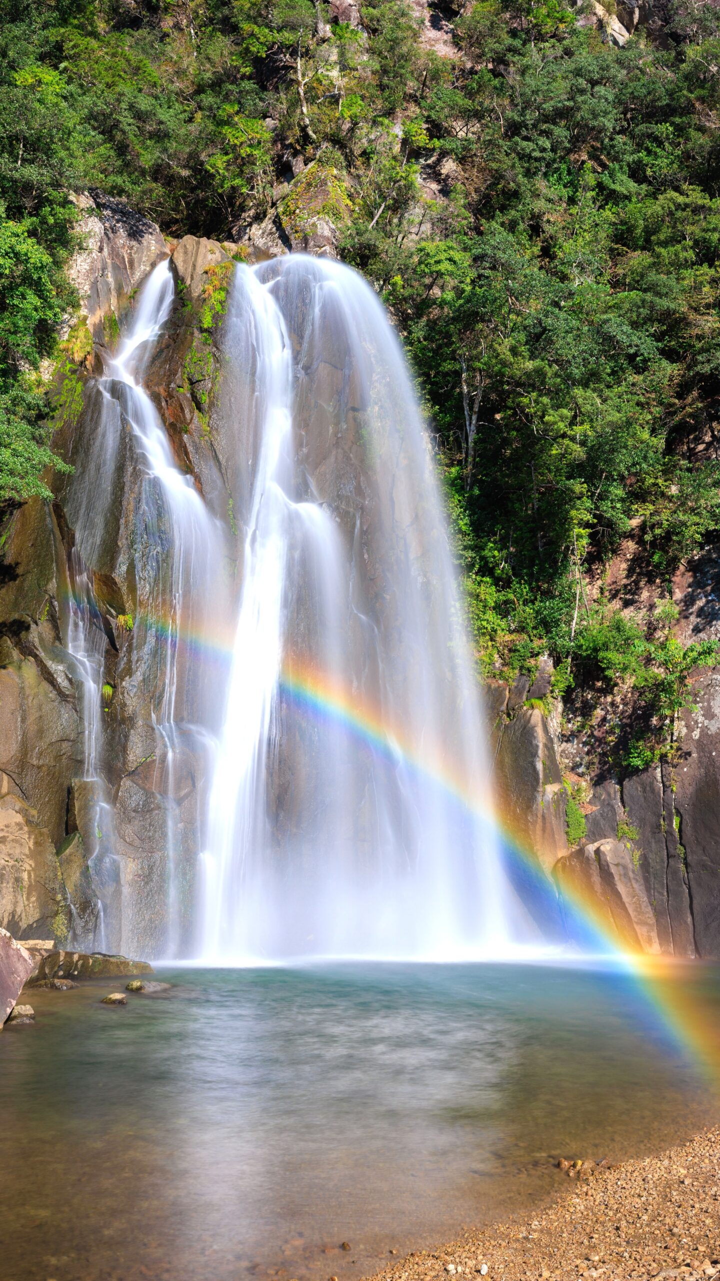 無料スマホ壁紙「滝と地を繋ぐ虹」はiPhone・Androidに対応した縦長の高画質な待ち受けです。三重県の飛雪の滝キャンプ場でふがまるちゃんが撮影した写真です。今月のカレンダーを合成や開運数字を追加するカスタマイズも可能です。商用利用OKのフリー写真素材ですが、利用規約を守ってご利用ください。