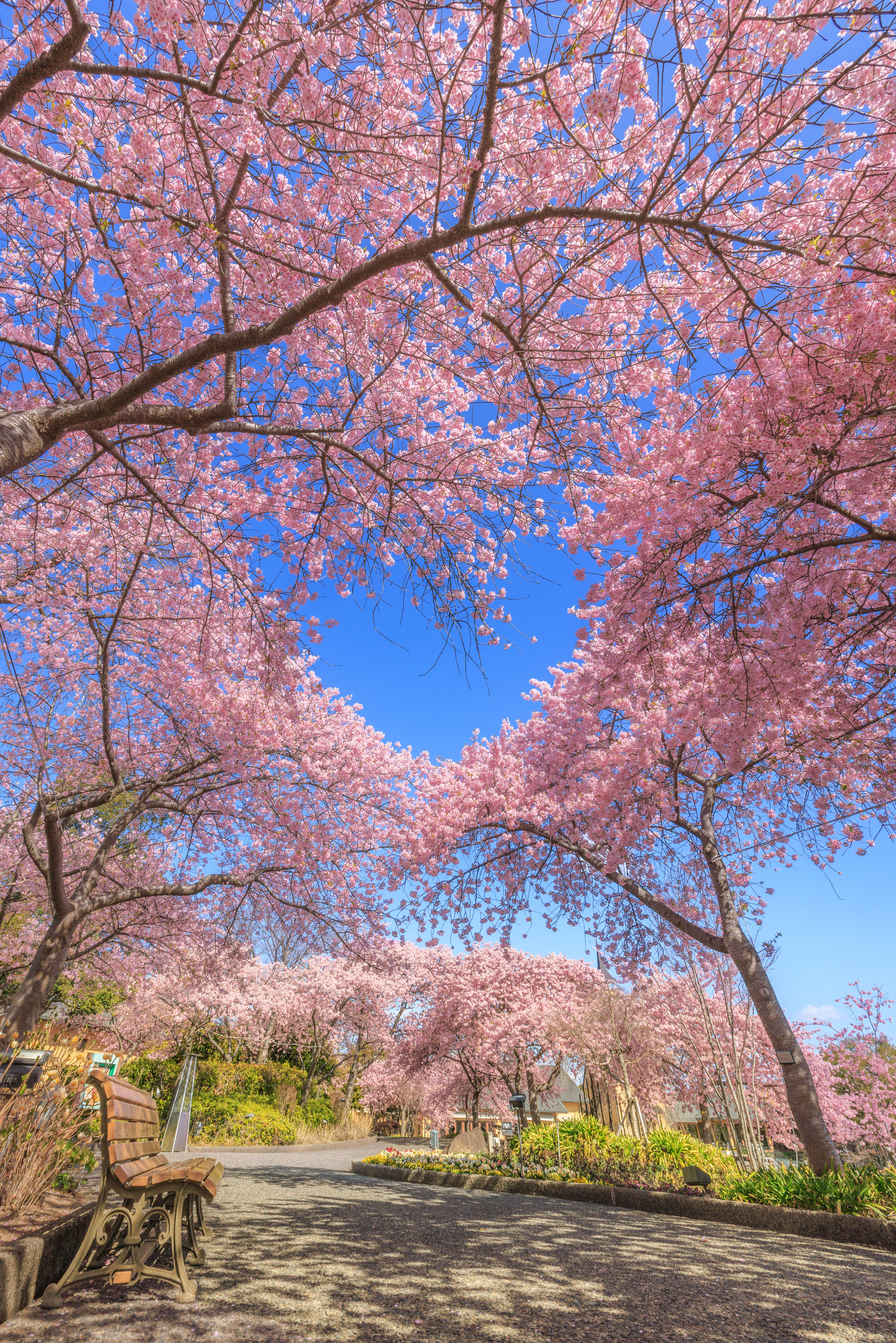 無料スマホ壁紙「真っ青なハートが浮かぶ河津桜」はiPhone・Androidに対応した縦長の高画質な待ち受けです。三重県のなばなの里でふがまるちゃんが撮影した写真です。今月のカレンダーを合成や開運数字を追加するカスタマイズも可能です。商用利用OKのフリー写真素材ですが、利用規約を守ってご利用ください。