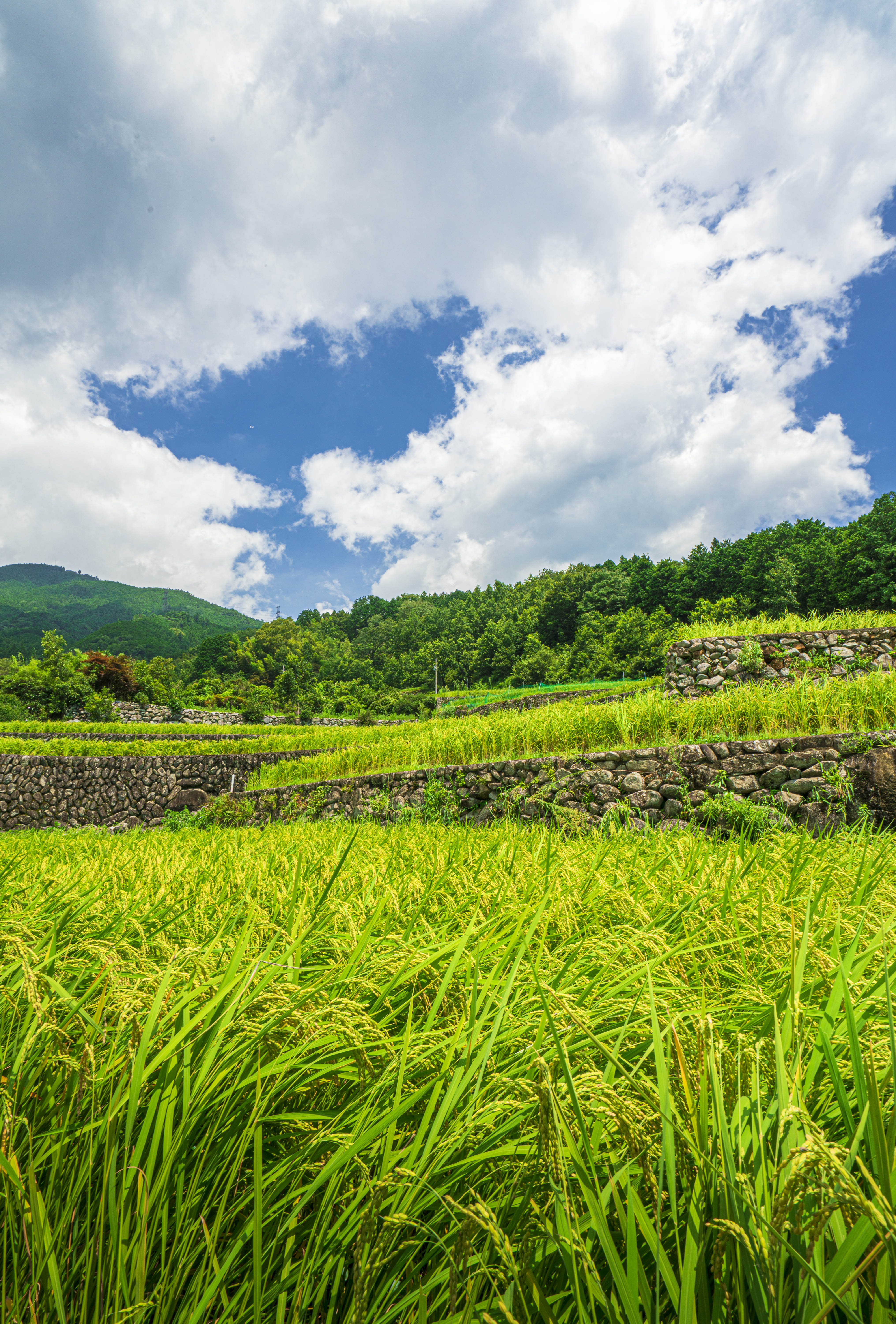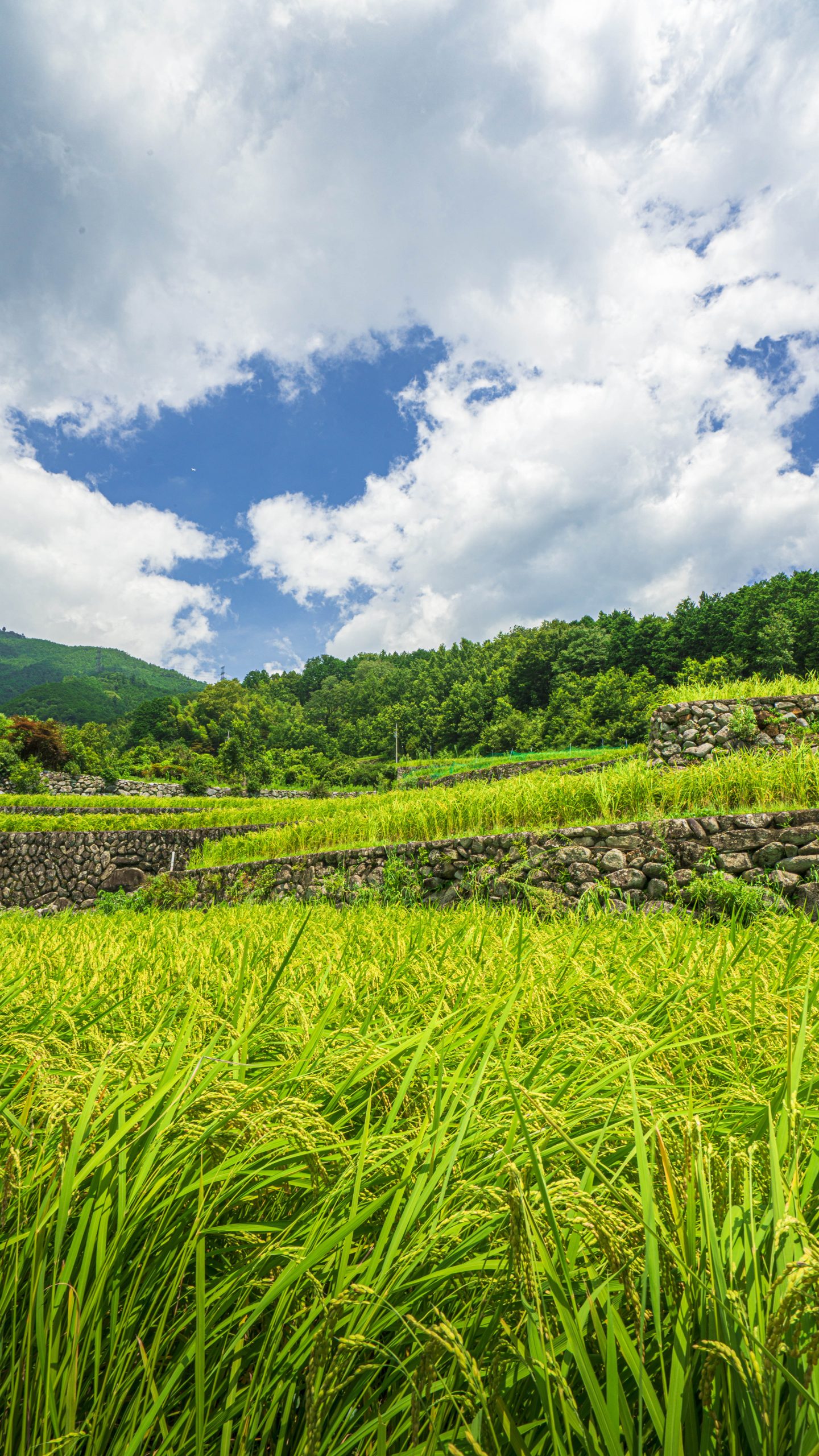 無料スマホ壁紙「真夏の棚田」はiPhone・Androidに対応した縦長の高画質な待ち受けです。三重県の深野のだんだん田でふがまるちゃんが撮影した写真です。今月のカレンダーを合成や開運数字を追加するカスタマイズも可能です。商用利用OKのフリー写真素材ですが、利用規約を守ってご利用ください。