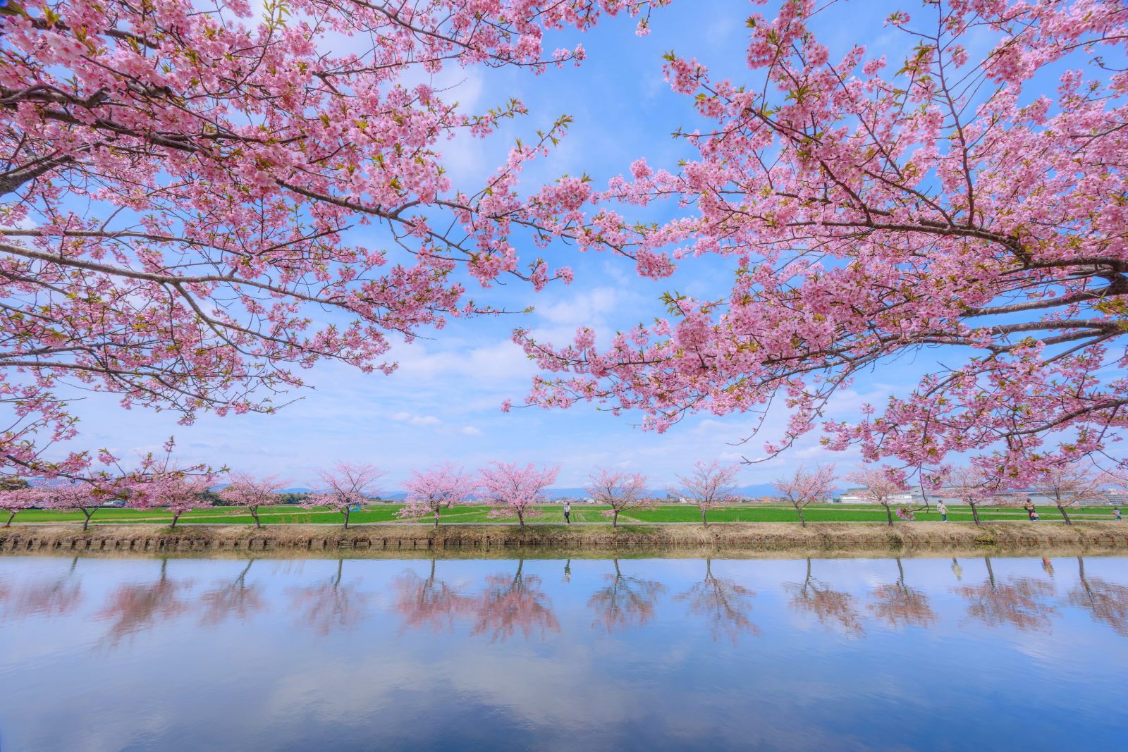çŽ1,5kmã®æ°Žè·¯æ²¿ãã«æ²³æŽ¥æ¡äžŠæšããããæ¯å¹ŽïŒæäžæ¬ãïŒæäžæ¬ã«èŠé ãè¿ããŸãã