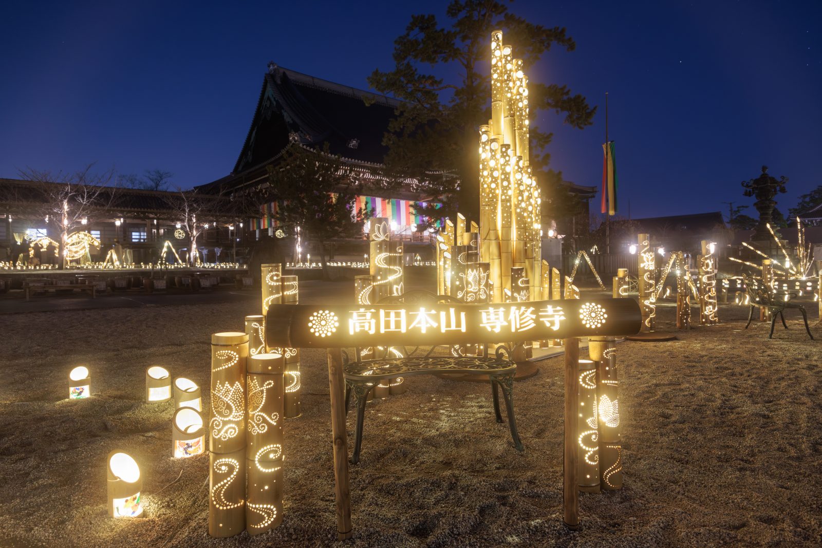 高田本山のお七夜が1月9日からスタート。東海最大級「3000本の竹あかり」が展示されます