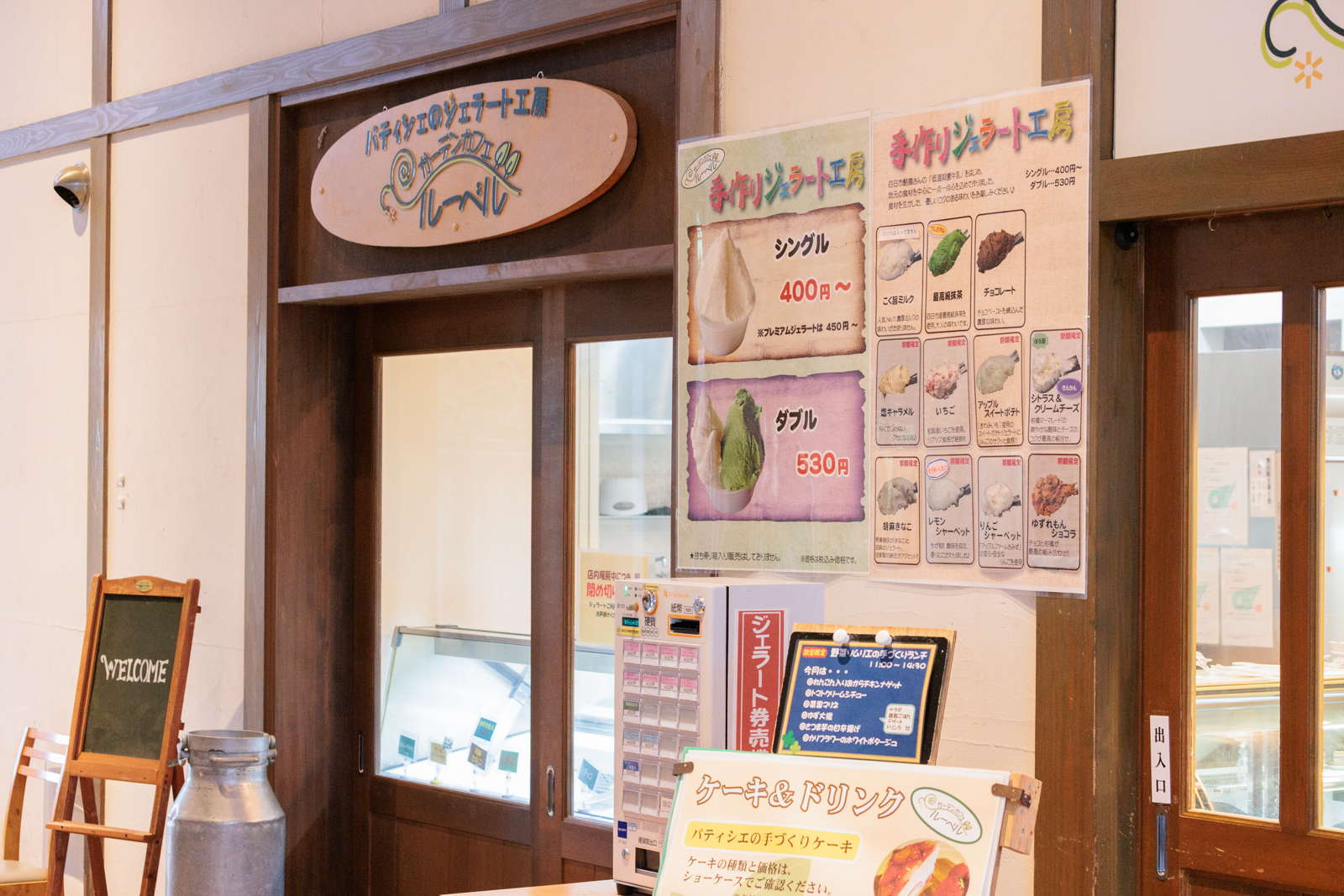 イングリッシュガーデンの建物内には、ジェラートやケーキを販売する「ガーデンカフェ ルーベル」があります。
